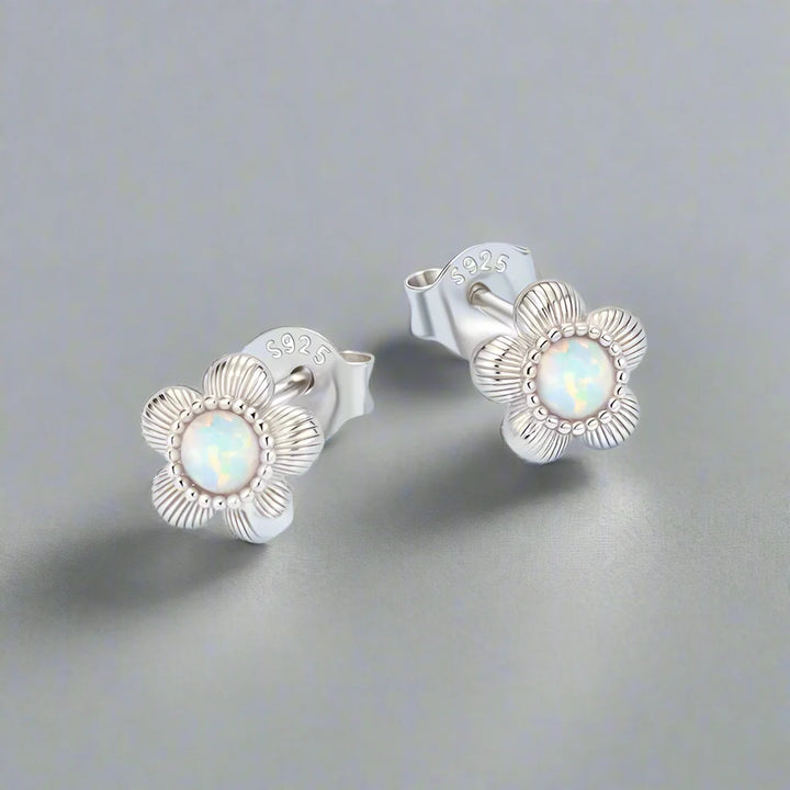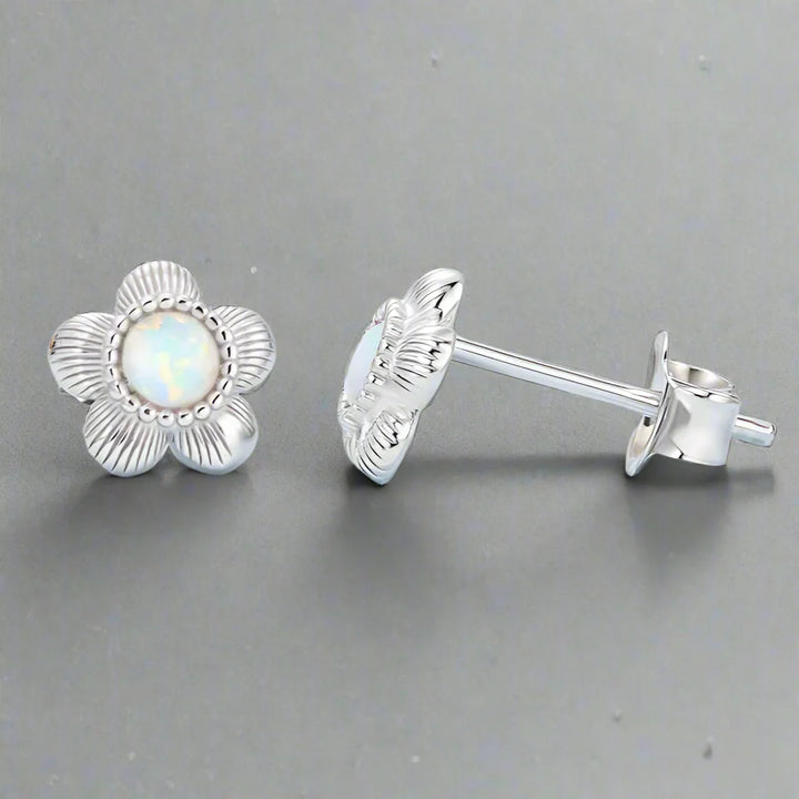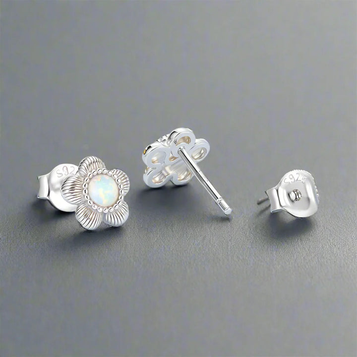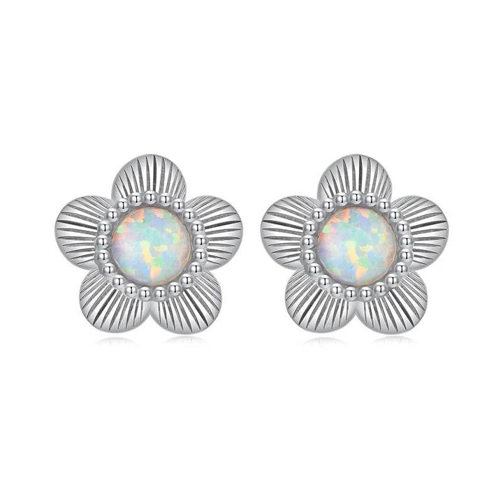 925 Sterling Silver Stud Earrings Charm Jewelry - Opal Flower - BSE1169
