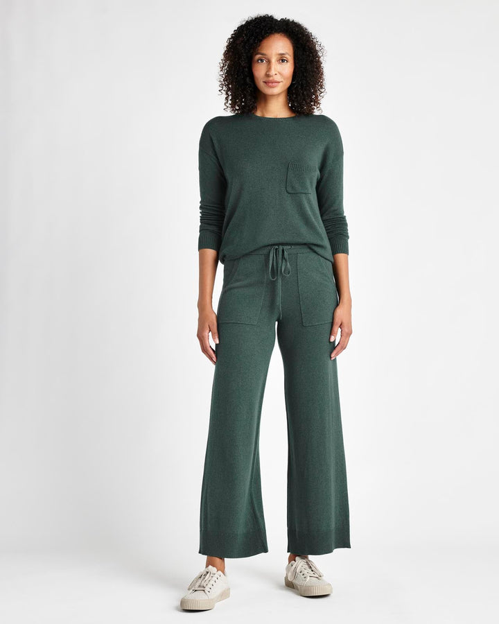 Cut from 100% cashmere, our Aksel Cashmere Wide Leg Pant combines comfort and luxury. Made in a wide leg silhouette with an ultra soft feel, this pant takes chic lounge dressing to a whole new level. Topped with a drawstring waist and front patch pockets, it's trimmed with rib texture detailing along the pockets and hem for a finish that looks (and feels) oh-so-elevated. Pair it with the Aksel Cashmere Hoodie.