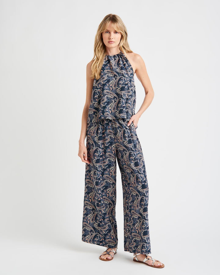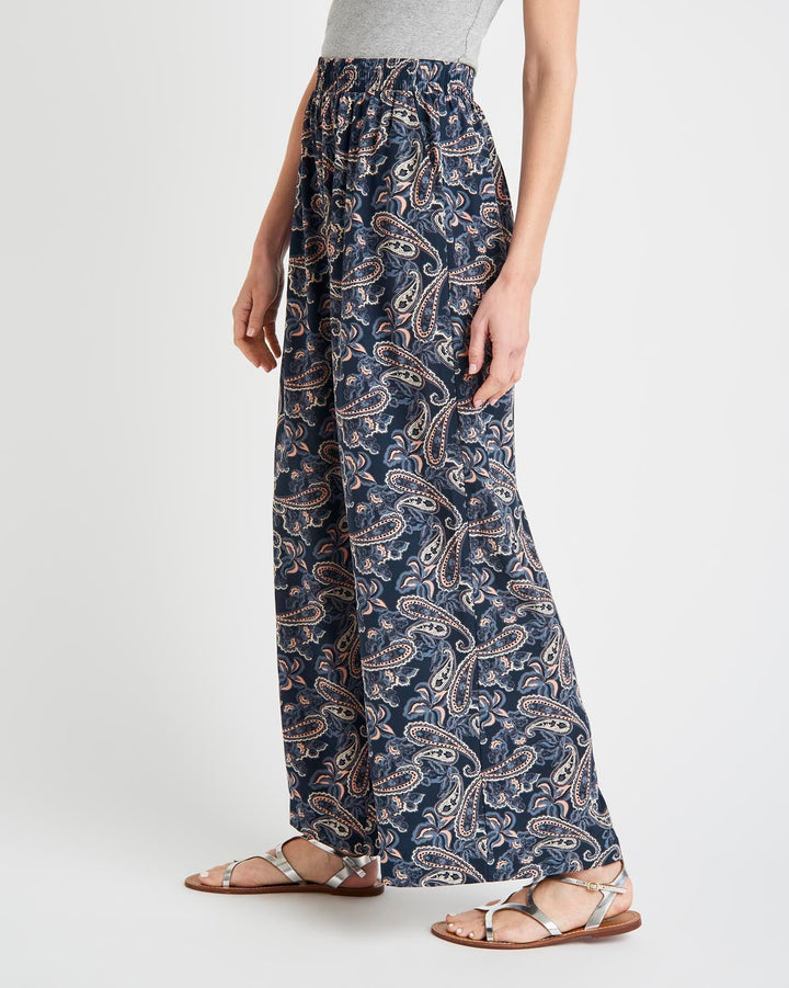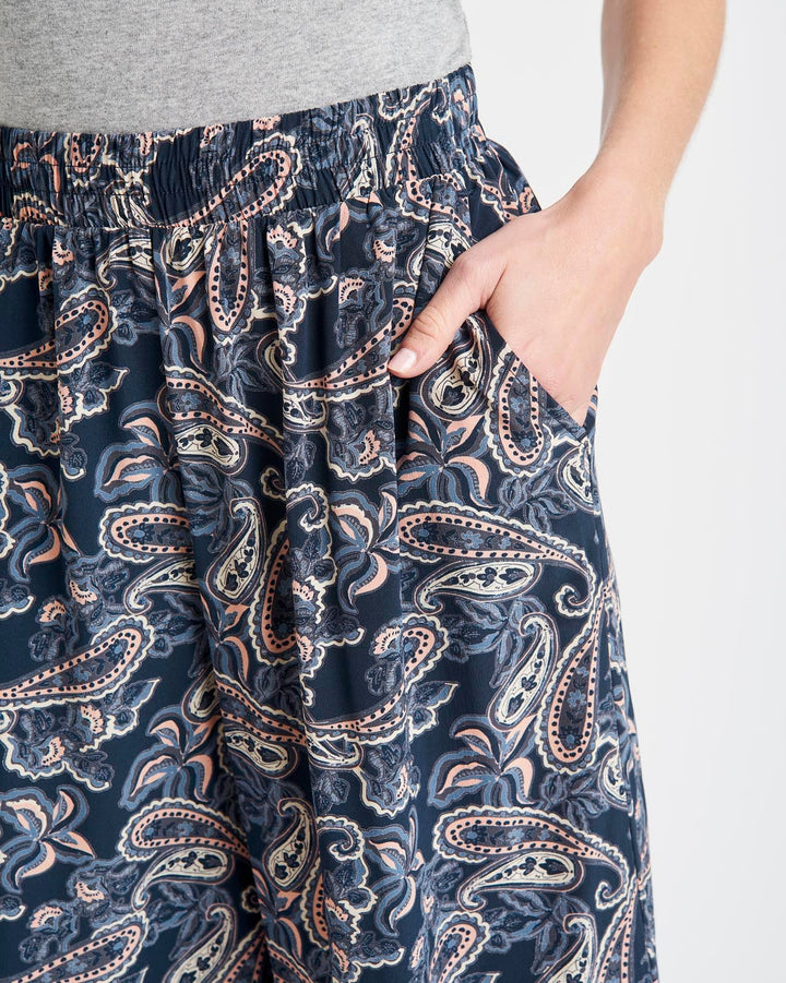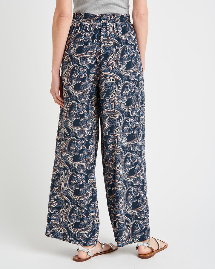 Slip into comfort with our Alessandra Paisley Silk Wide Leg Pants. Made from 100% silk, these breezy pants feature a wide elastic waistband and side pockets for added comfort.