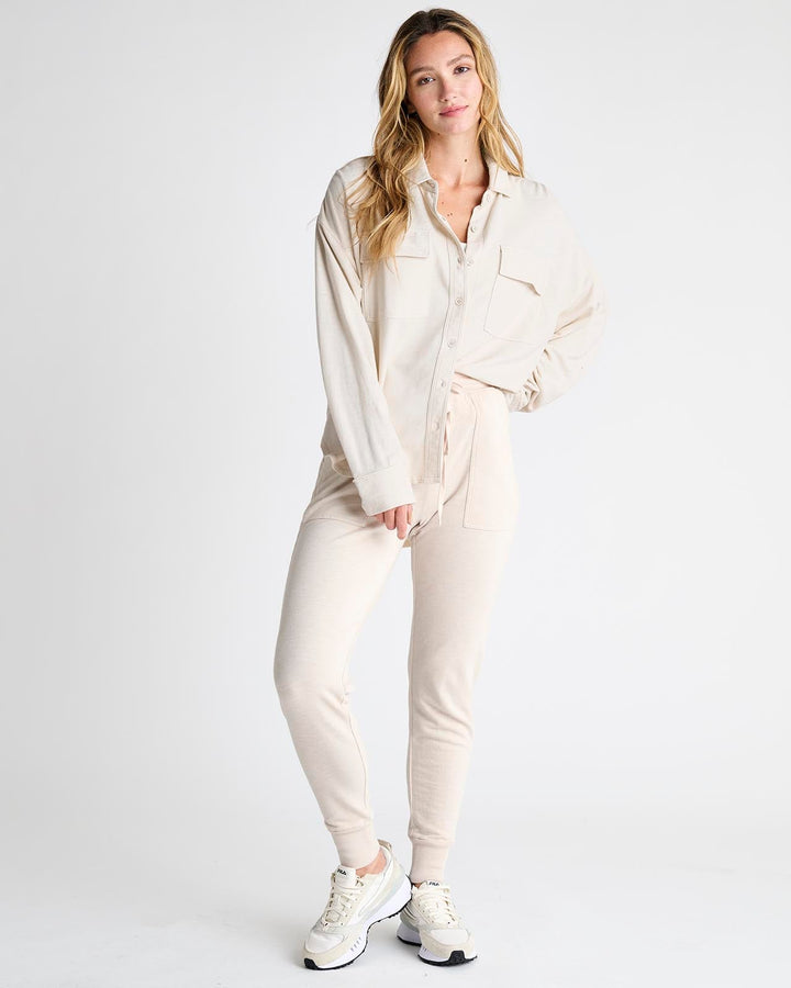 You'll love throwing on the Amara Jogger because it's made from soft slub terry. It features a drawstring waist, patch pockets and a slim fit with a cuffed hem. Top it with the matching Amara Pocket Button Down Shirt.