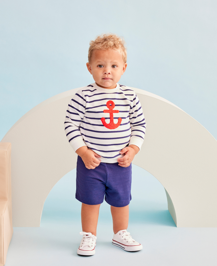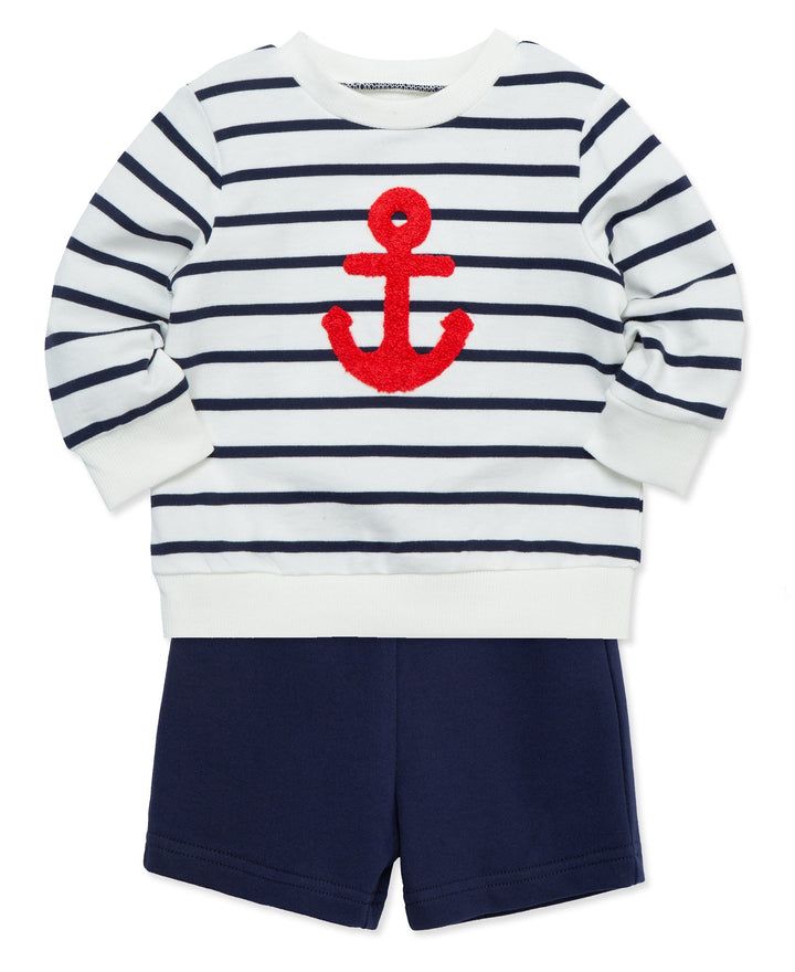 - Anchors Aweigh! This boys' 2-piece cotton sweatshirt-sorts set will have him coasting through a summer of fun!