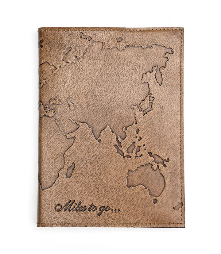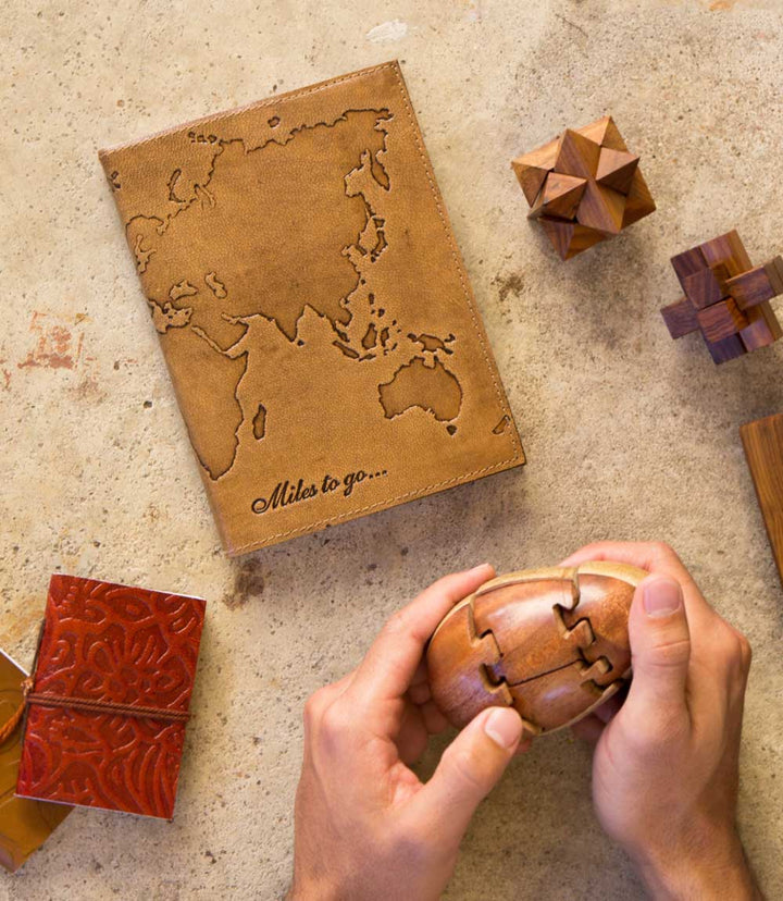 An intricately embossed world map design and a reminder of the "miles to go," graces the cover of this ethically sourced leather journal. Inside are 144 pages of 100% tree-free, recycled cotton paper. Artisans collect cotton waste and turn it into a pulp to create a rich textured paper with a uniquely soft feel.