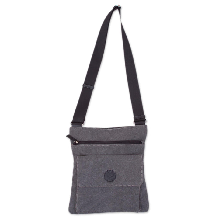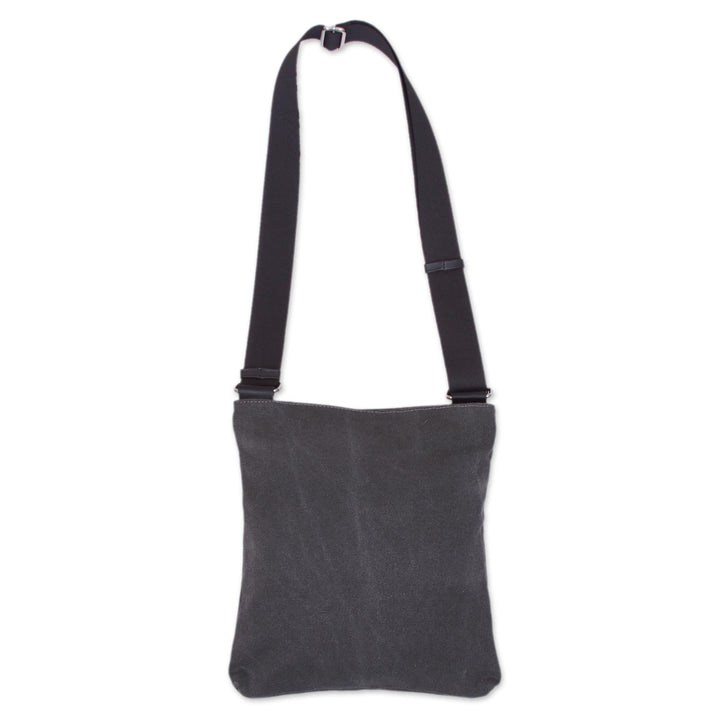 Ancient Traveler Leather Accent Cotton Shoulder Bag in Slate from Peru