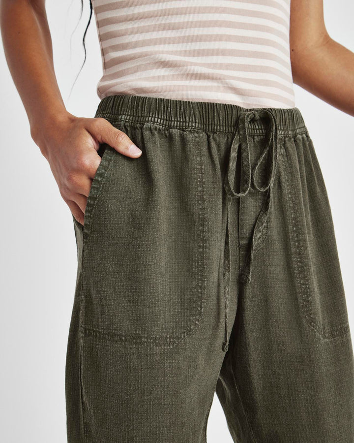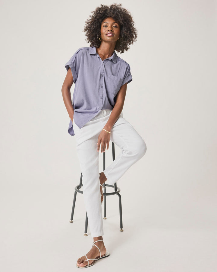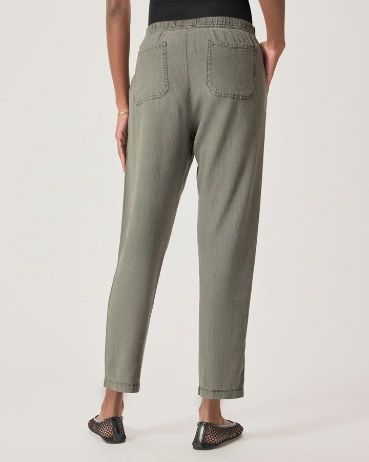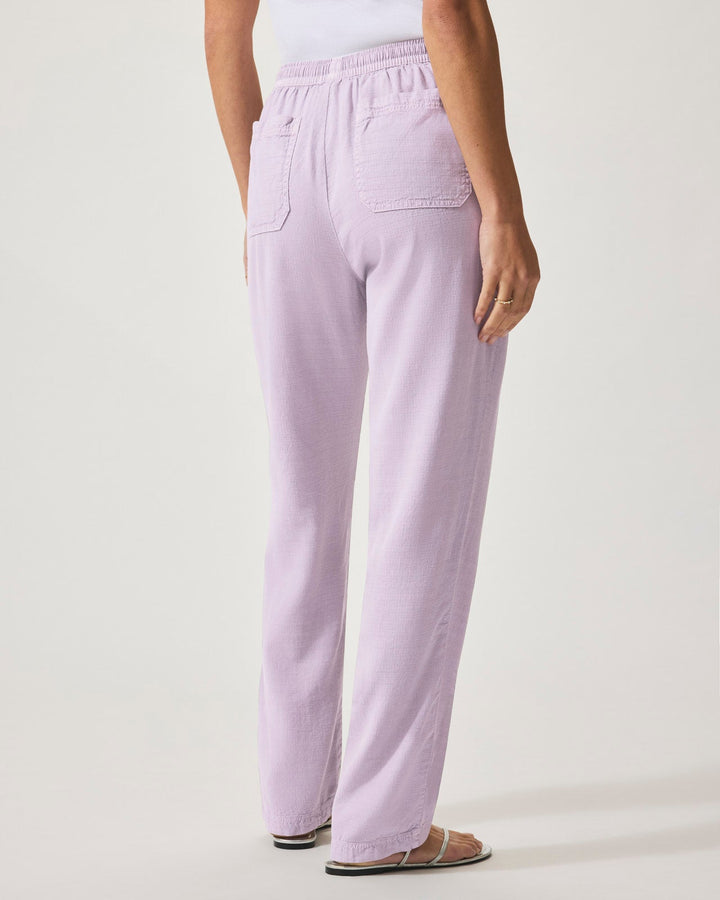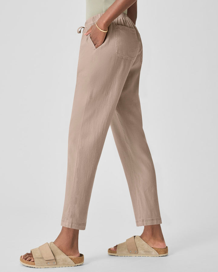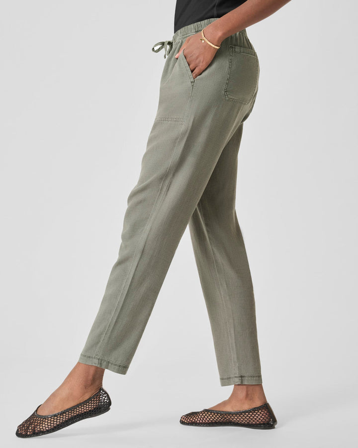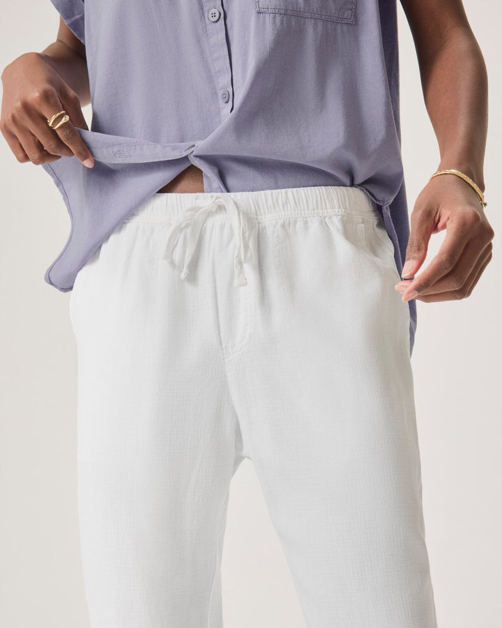 The straight leg version of our best-selling Angie Crop Wide Leg pant, these linen-blend bottoms are sure to become a fast favorite. This effortless style takes you from WFH to weekend outings. It's topped with a stretchy drawstring waist with seamed patch pockets. The hem hits just above the ankle so you can rock them with sandals, slides, sneakers-- take your pick.