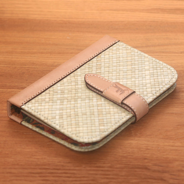 Archer's Mark Beige Woven Pandanus Leaf Six-Ring Binder for Journal