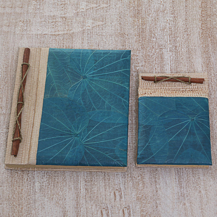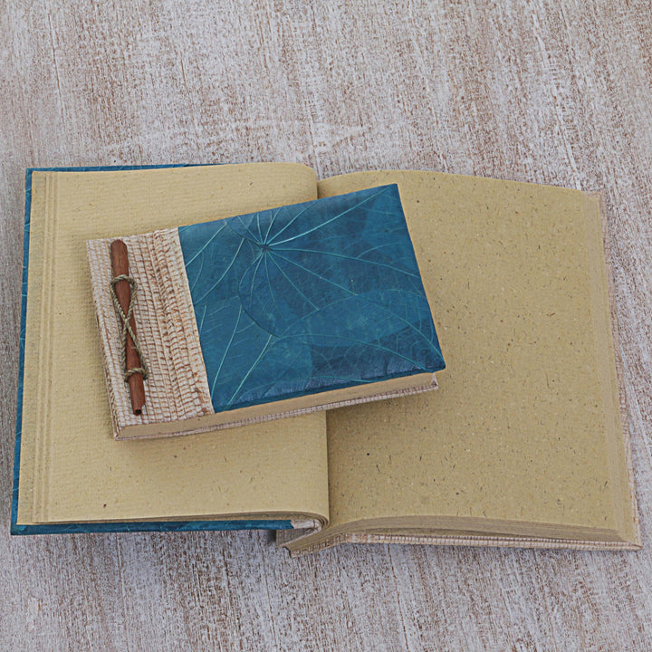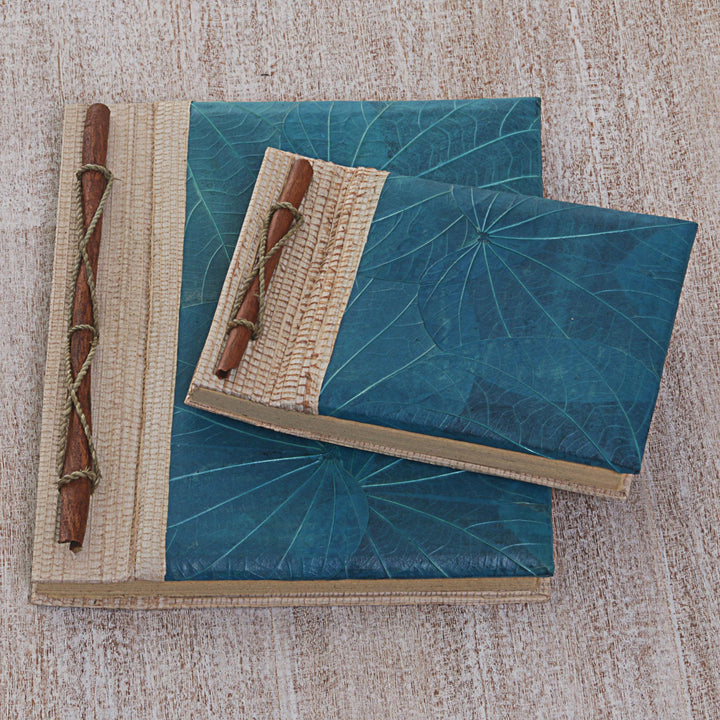 Autumn Spirit in Blue Handcrafted Pair of Rice Paper Notebooks from Indonesia