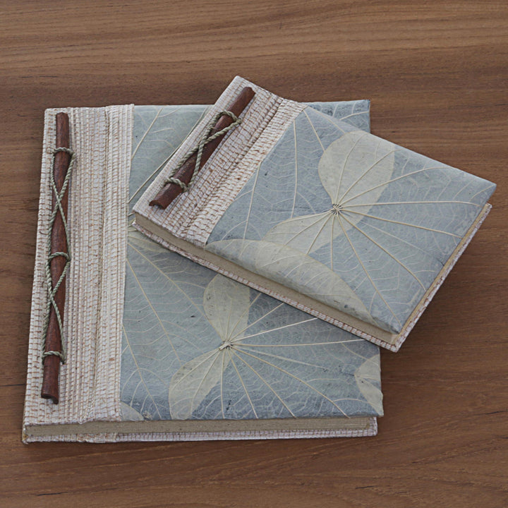 Autumn Spirit in Grey Handcrafted Pair of Rice Paper Notebooks from Indonesia