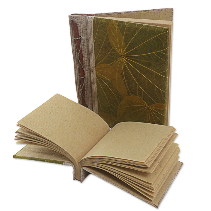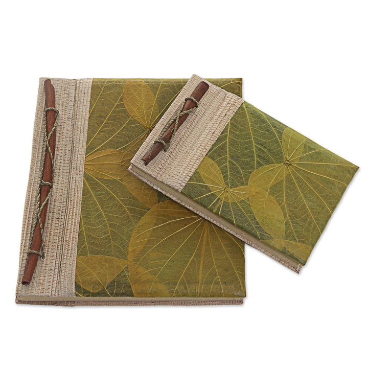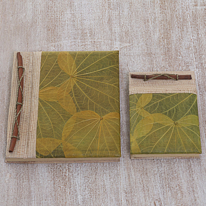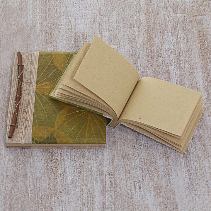 Autumn Spirit in Olive Handcrafted Pair of Rice Paper Notebooks from Indonesia