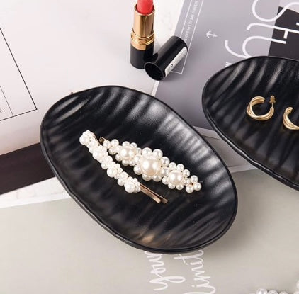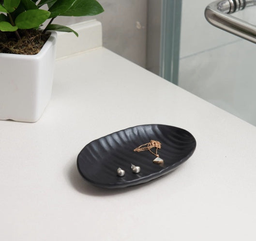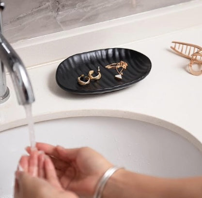 - 【Modern & Sleek Design】 The oval-shaped ring dish features a stylish matte black finish that blends seamlessly with any decor. The understated elegance and mystery of the dish make it perfect for home bedroom, bathroom, or kitchen sink decor.