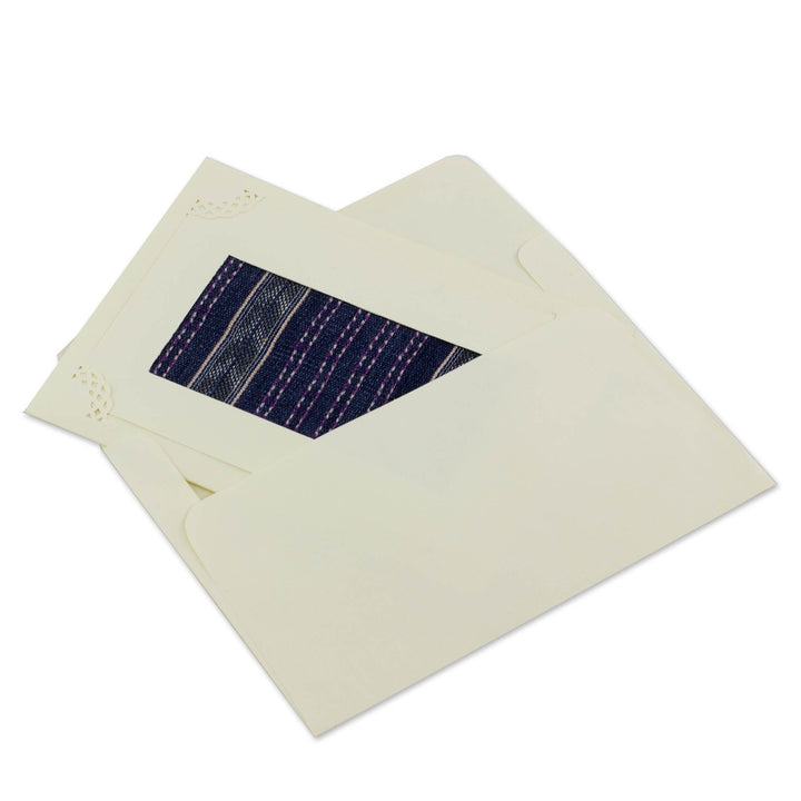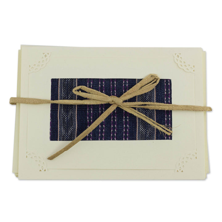 Crafted by hand, these all-occasion greeting cards show the skill of Magdalena Women Artists. Each one features an inset of Guatemala's renowned Maya weavings. They present the blank cards and envelopes in a set of four, tied with a reed cord.