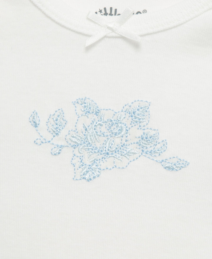 - Multiple her outfit options with this newborn baby girls' bodysuit trio adorned with beautiful blue roses!