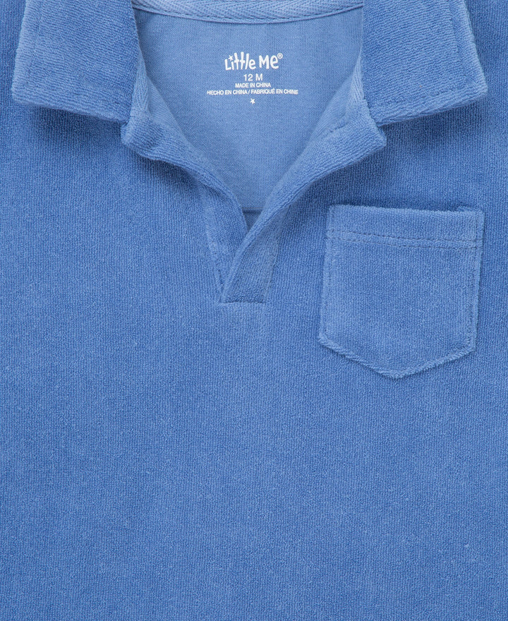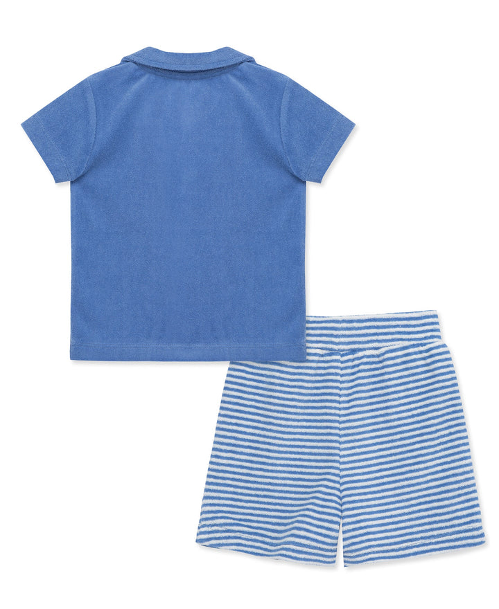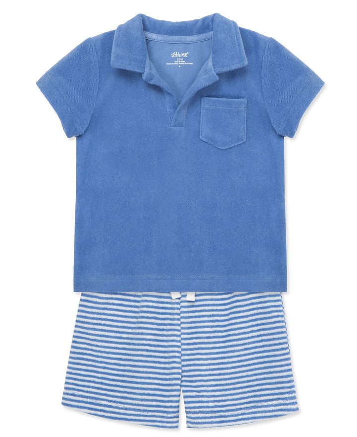 - Summertime is a breeze in this boys' terry set featuring the blue short-sleeve polo and coordinating blue and white stripe shorts!