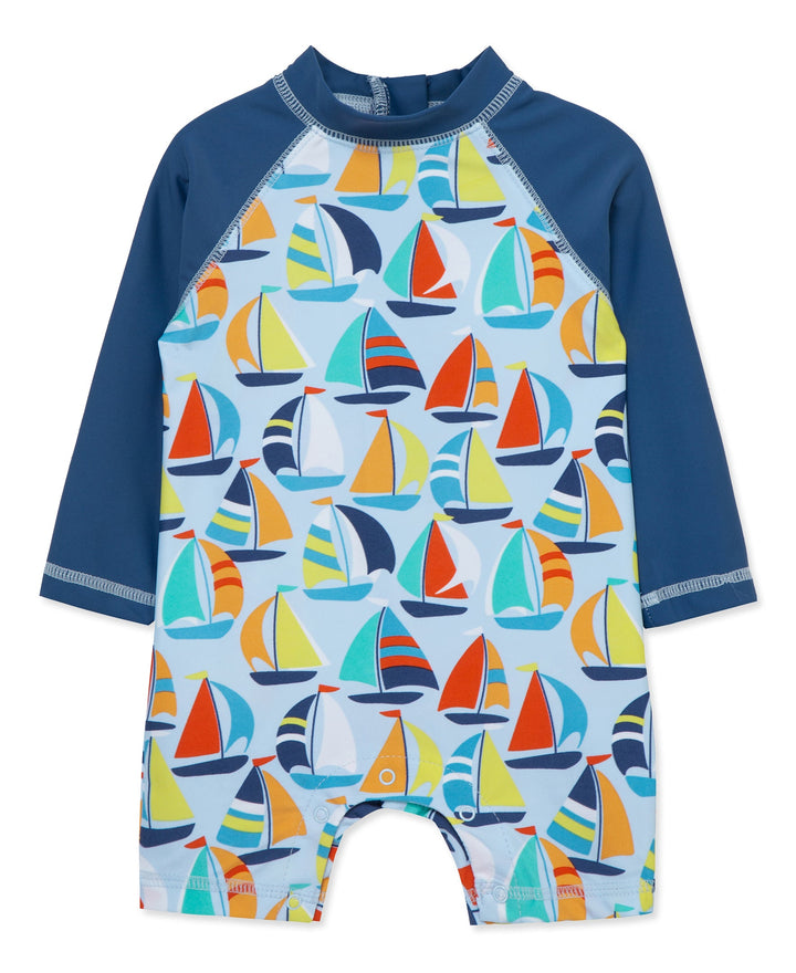 - Sailboats drift into the sea in this boys' protective long-sleeve rashguard suit made from quick-drying UPF 50+ fabric!