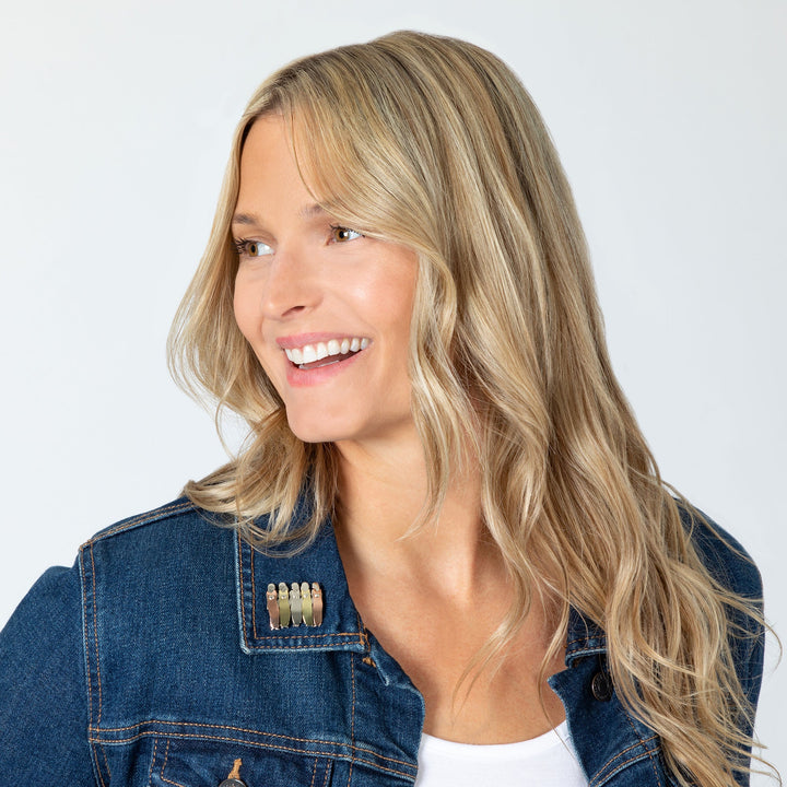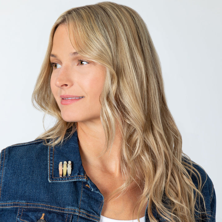 Handcrafted by artisans, each pin is made with a collection of mixed metals – alpaca silver, brass, and copper make each piece brilliant and versatile. An accessory to cherish, just like your never-ending bond with those cherished women in your life.