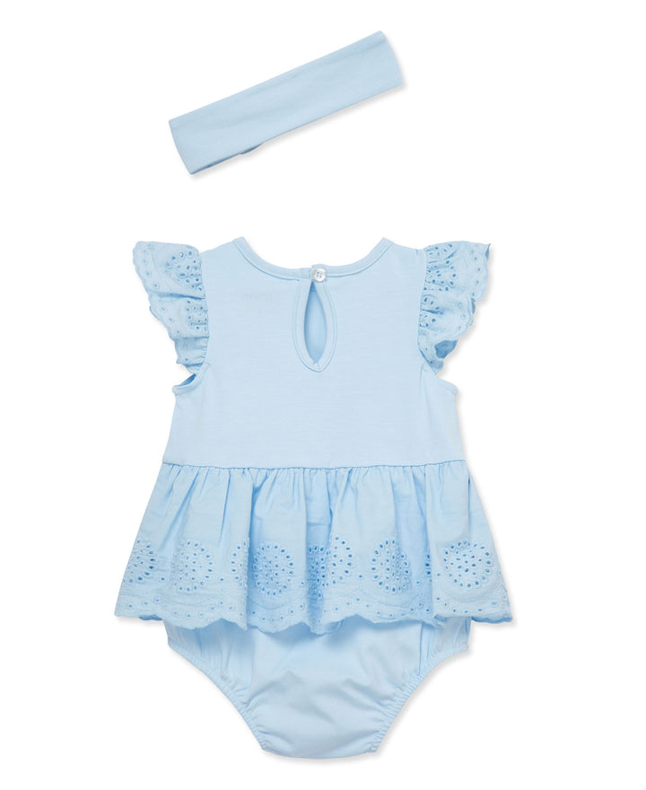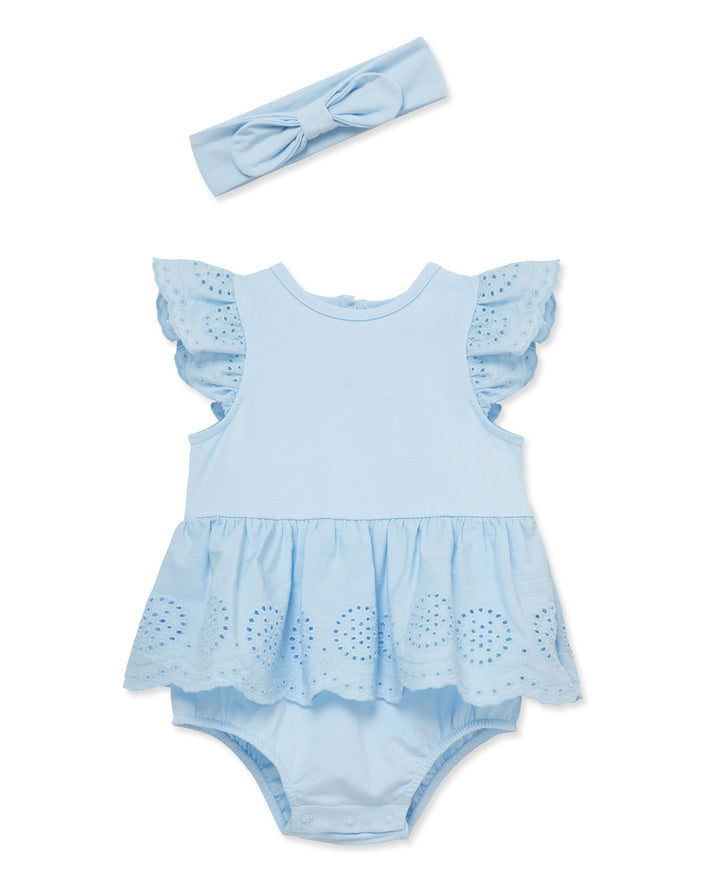 - This newborn baby girls' blue eyelet bubble bodysuit and headband set, made from luxurious bamboo and organic fabric, will make picking out her next outfit a breeze!