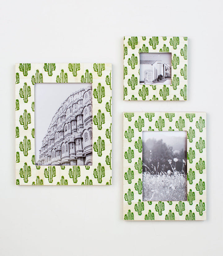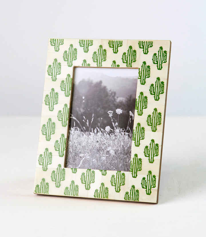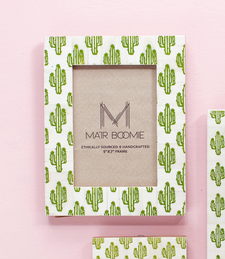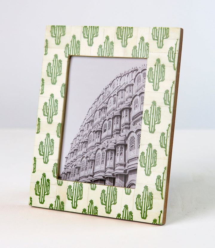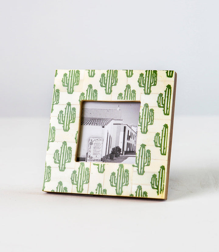 Display your most treasured memories in the cactus frame, made of cruelty-free, ethically sourced bone with a screen-printed cactus motif.