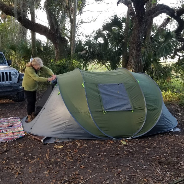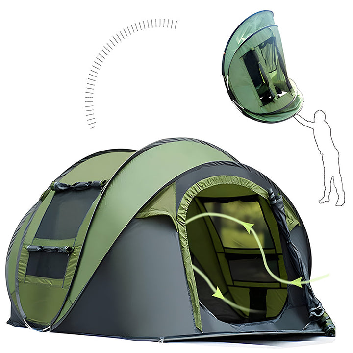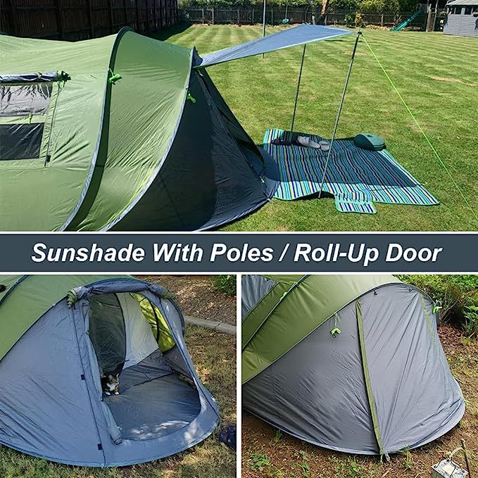 - 【Cool Ventilation with Porch】2 big doors and 2 wide windows allow the air flows and keep the instant tent ventilated well, used as a Popup Beach Tent to enjoy cool breeze. The doors can be set up with your own trekking poles(Exclude in package) or outdoor sticks to be used as a Front Porch, providing a little shade while sitting in front of tent