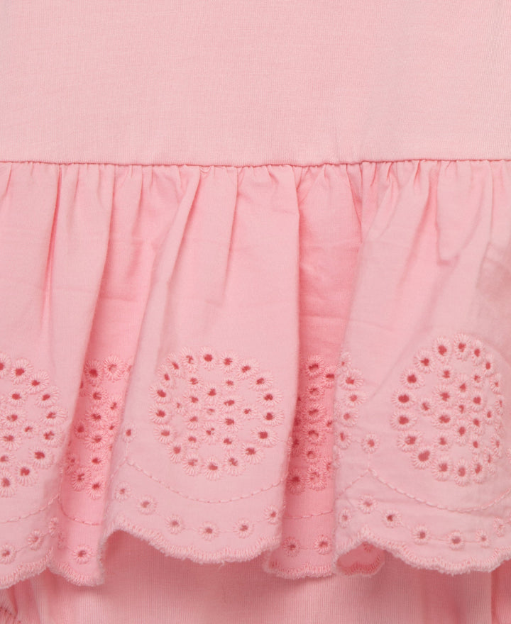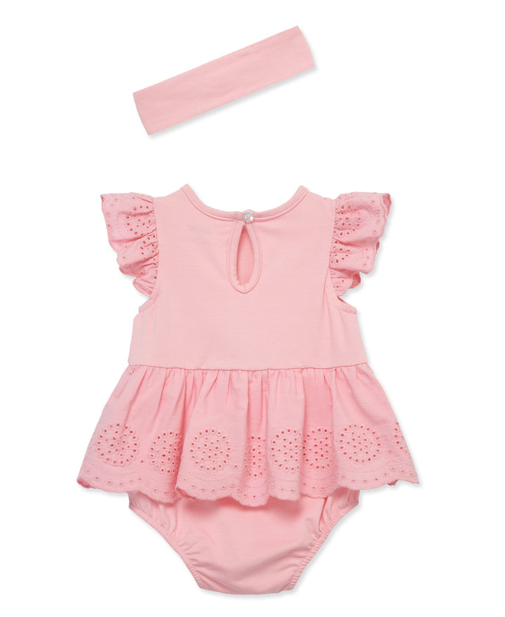 • Our newborn baby girls' candy pink eyelet bubble bodysuit and headband set, crafted from comfy bamboo and organic fabric, will be a top pick for any occasion!