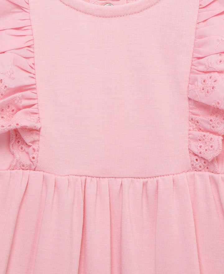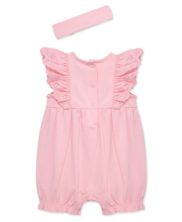- She'll be pretty-in-pink in this newborn baby girls' eyelet romper and headband set! Crafted from bamboo and organic fabric, this set is sure to keep her comfy during playtime!