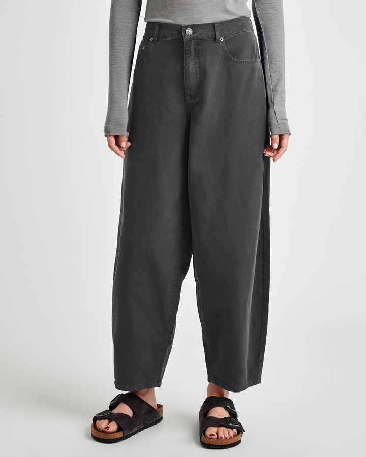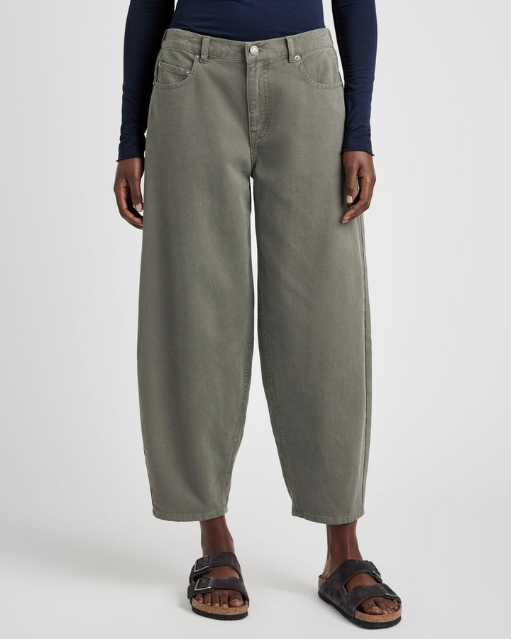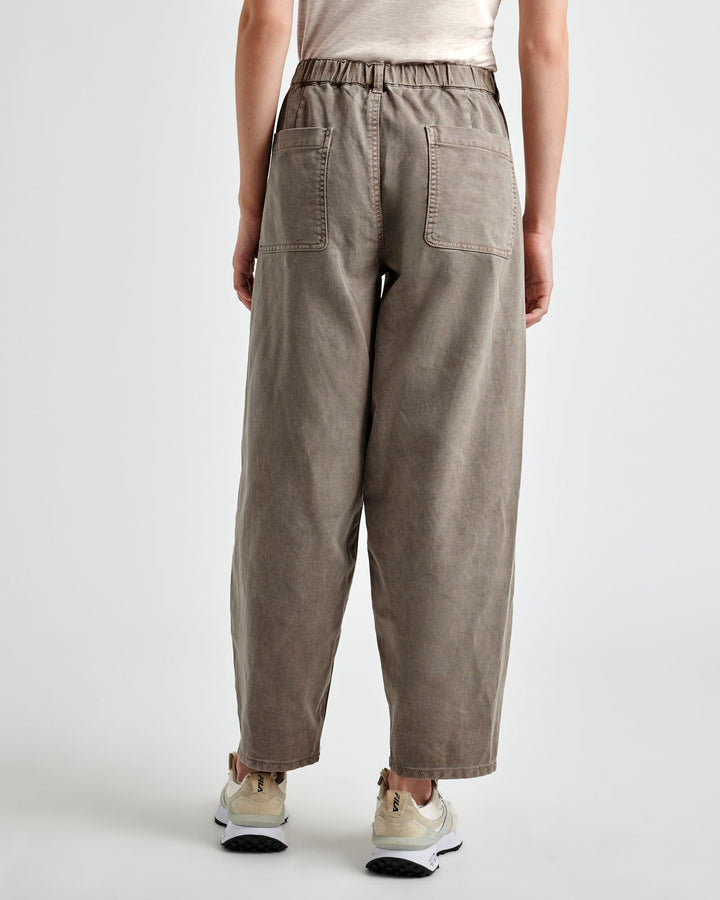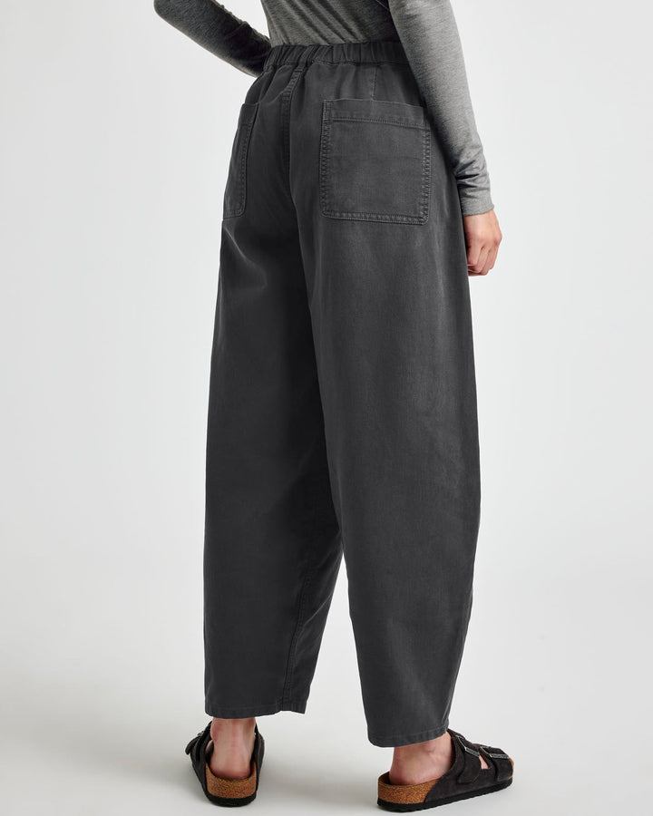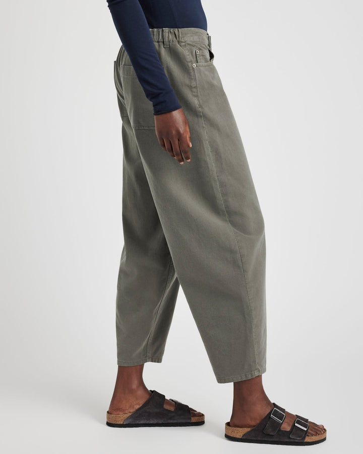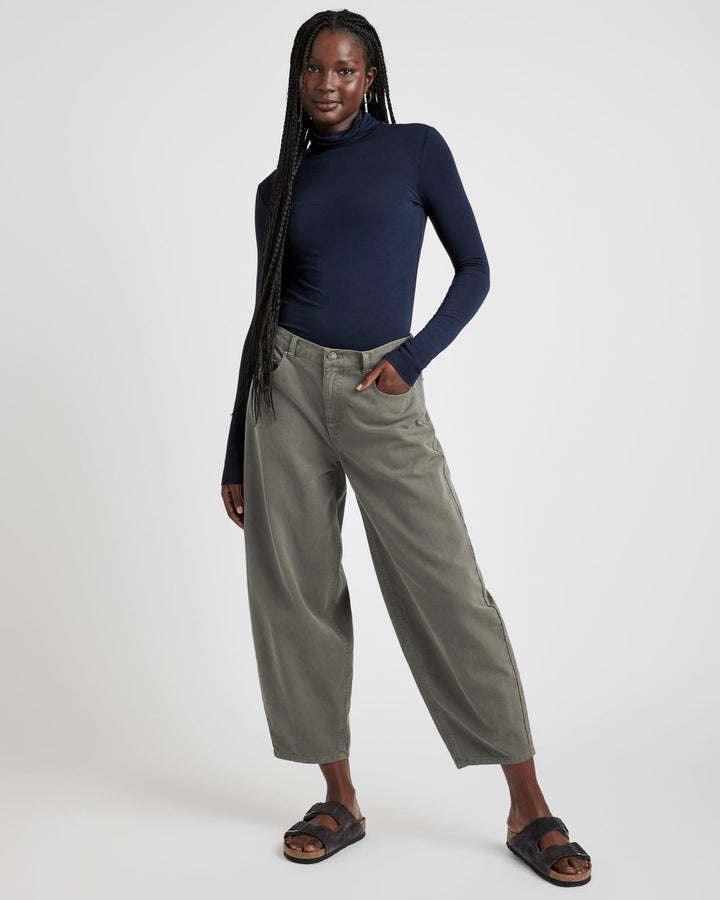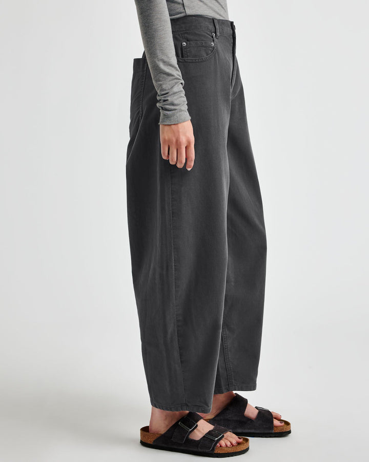 When you need a break from your fitted jeans, reach for our Carson Pant. Made from a cotton-viscose blend, this comfy five-pocket pant has a barrel leg for the most elevated, relaxed look. The waistband features belt loops with an elastic back to ensure a perfect fit. Just like your favorite denim pair, they look good styled with any shoe-- from boots to sneakers.