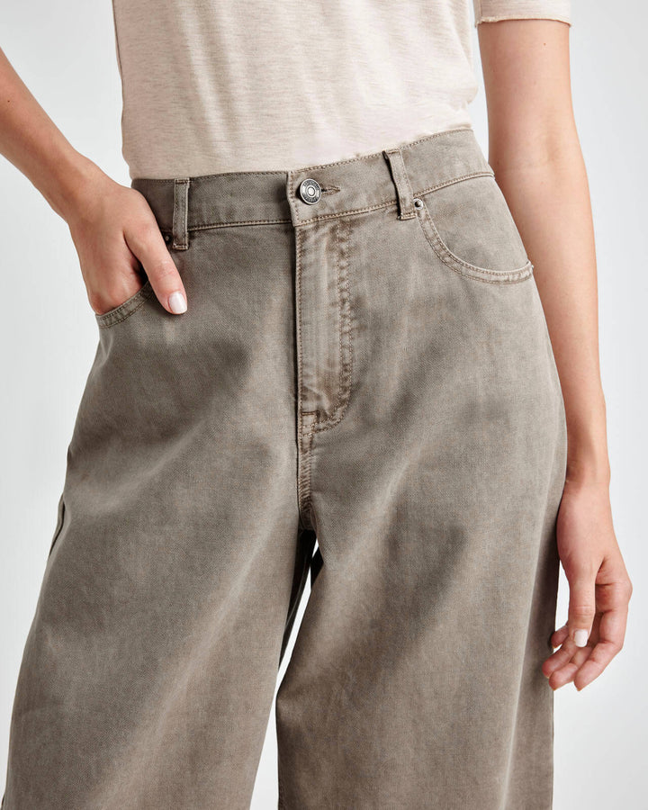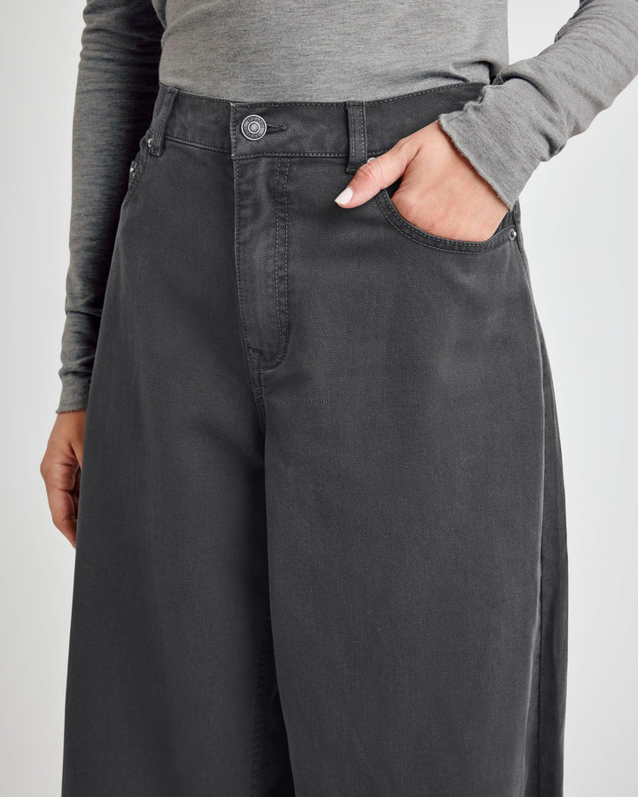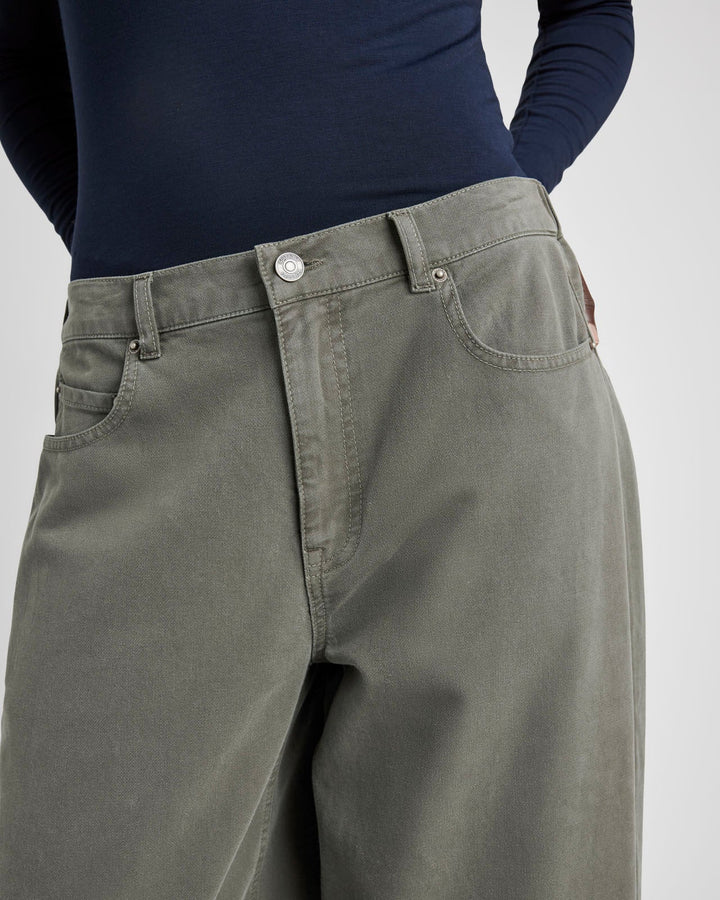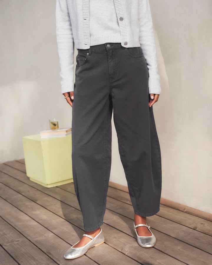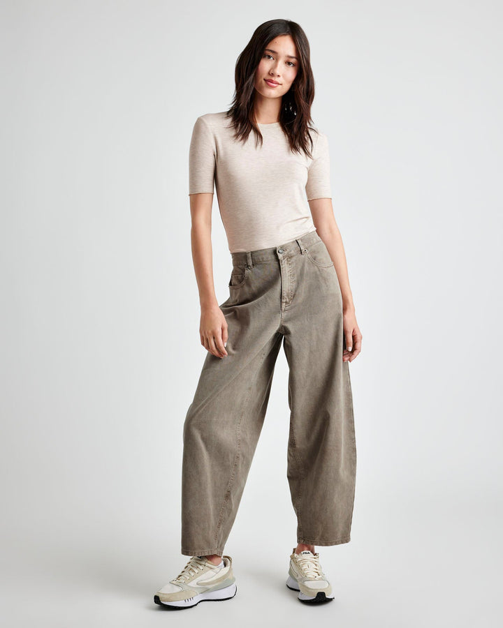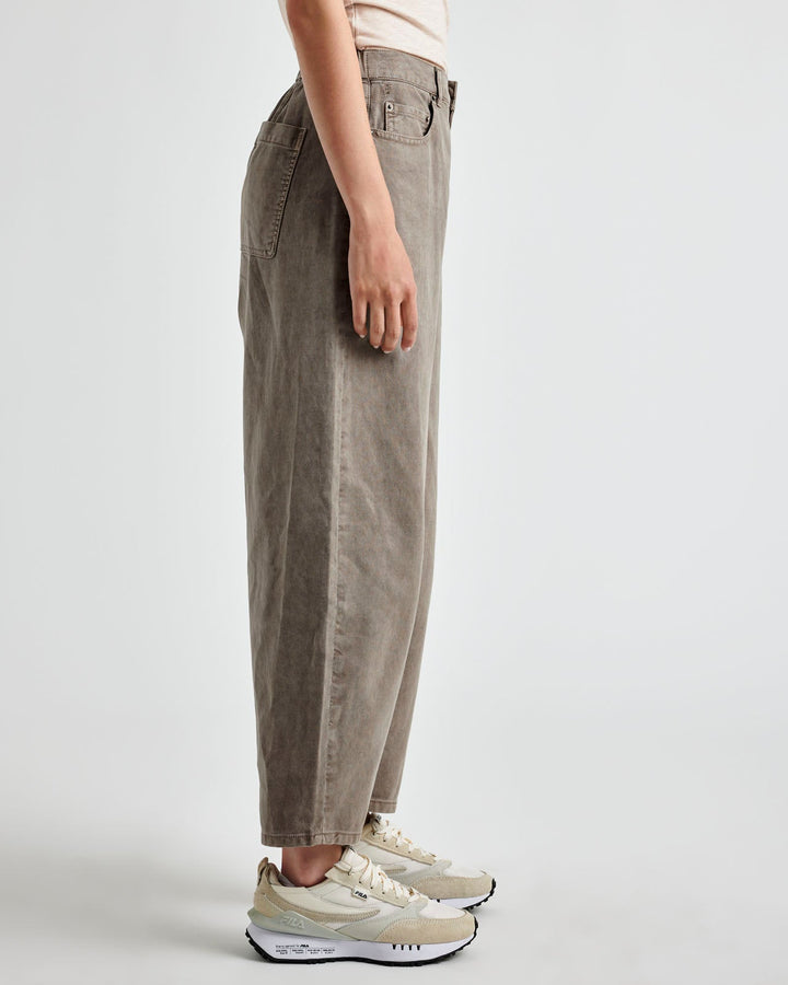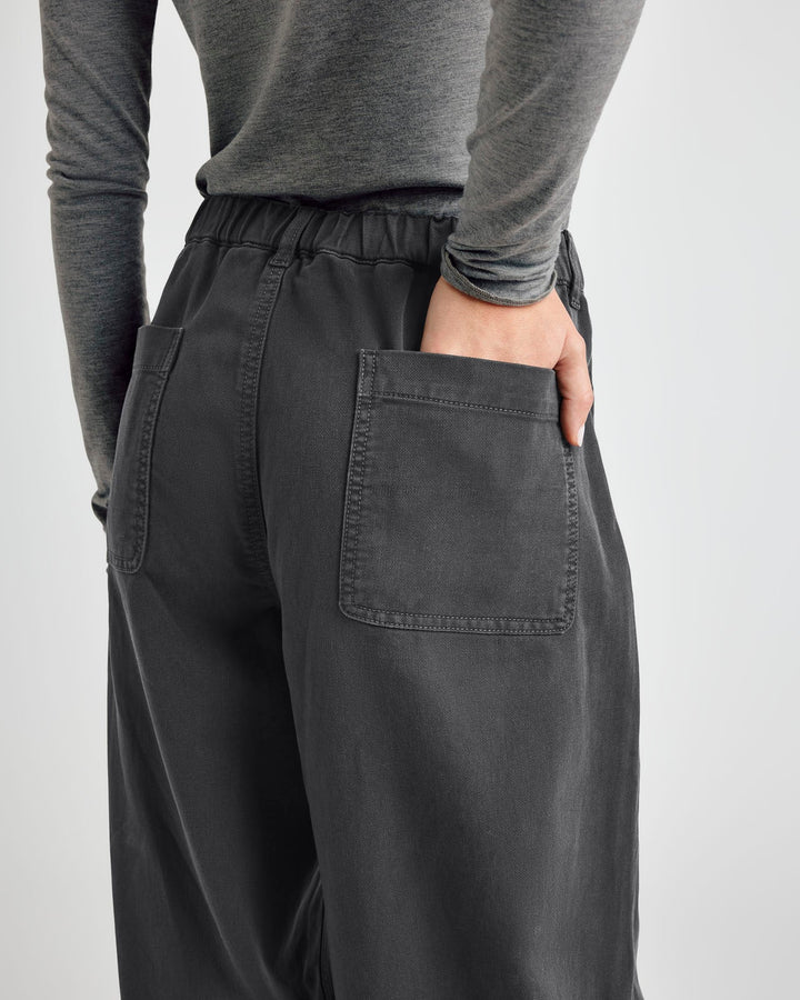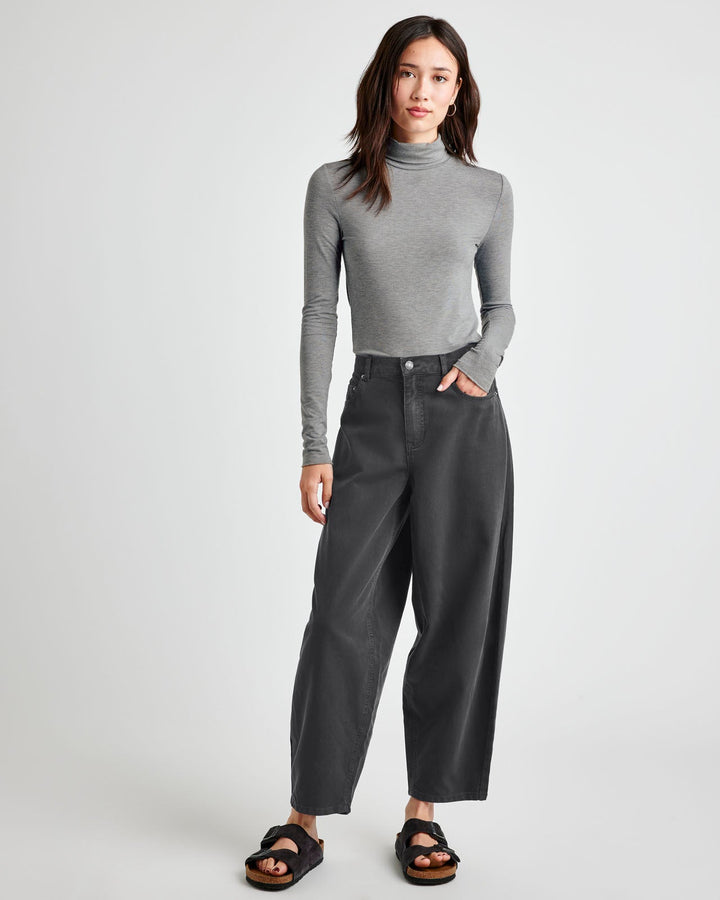 When you need a break from your fitted jeans, reach for our Carson Pant. Made from a cotton-viscose blend, this comfy five-pocket pant has a barrel leg for the most elevated, relaxed look. The waistband features belt loops with an elastic back to ensure a perfect fit. Just like your favorite denim pair, they look good styled with any shoe-- from boots to sneakers.