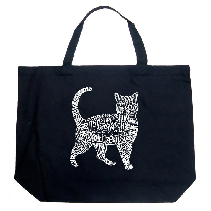 Created out of cat themed words - There is no greater bond than between a human and their Cat. Celebrate your love for your cat and all cats with this great word art design. This cat shape is created out of popular cat themed words.