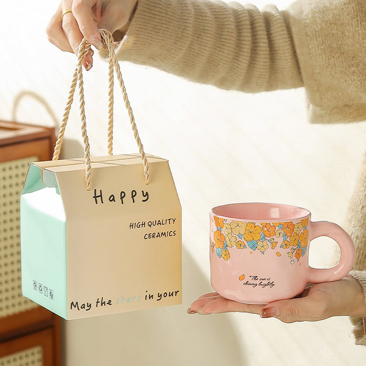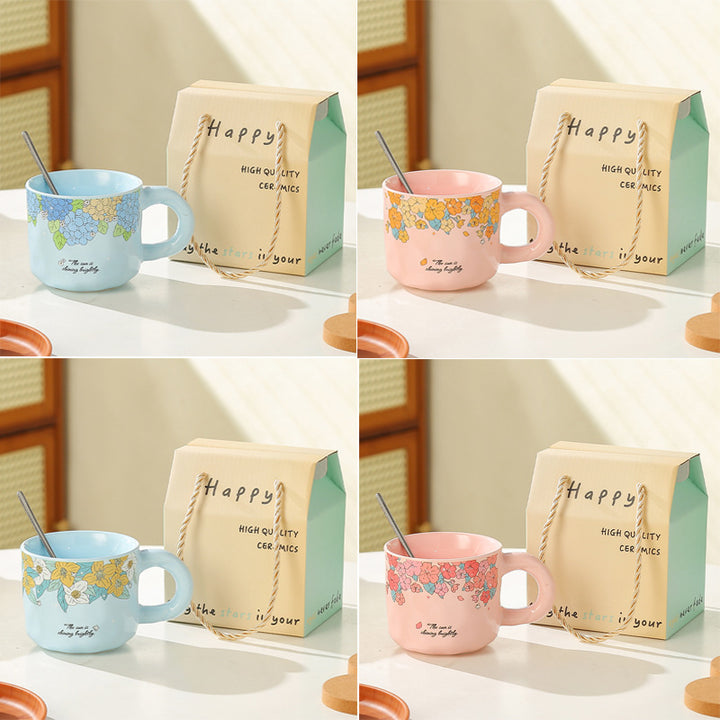 Ceramic mug set as a gift; high-quality mug with a spoon and a gift box.