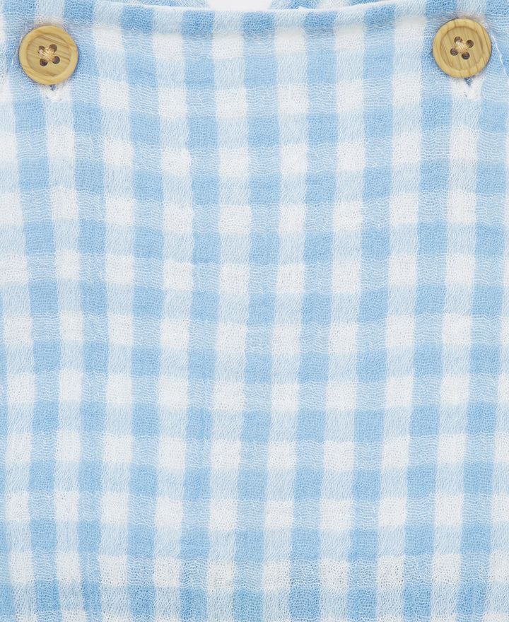 - Have your little one picnic-ready in this boys' check cotton gauze sunsuit and matching hat set!