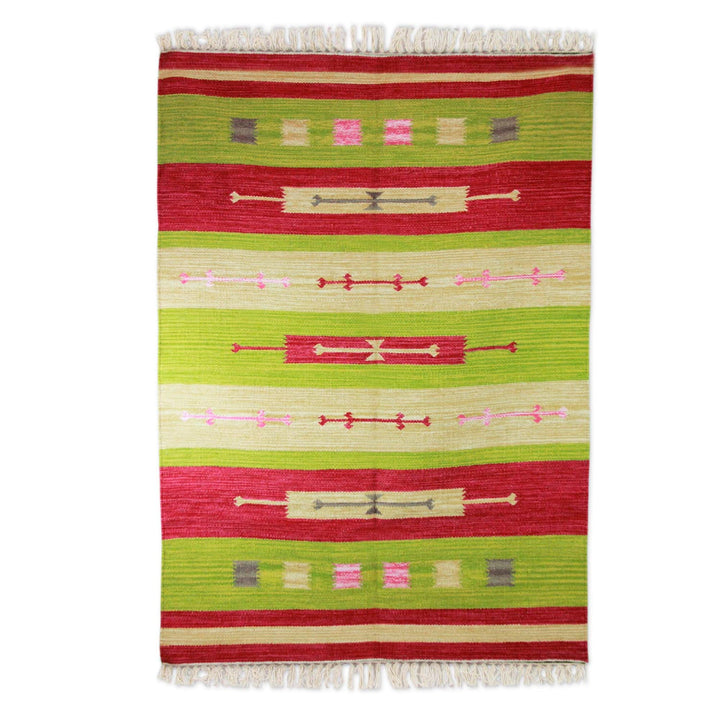 Cherry Lime Geometry Wool dhurrie rug (4x6)