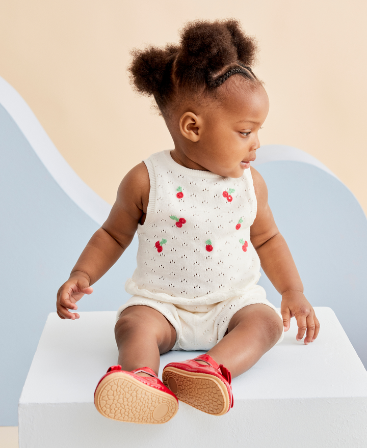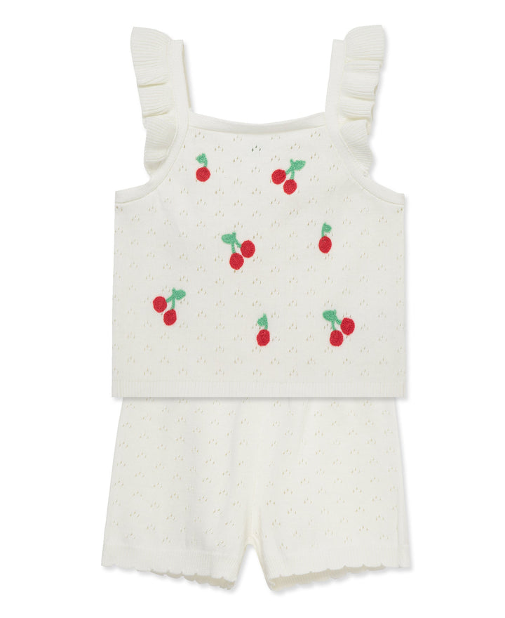 - This girls' cotton pointelle knit set is cherry sweet, featuring the cherry tunic and coordinating shorts!
