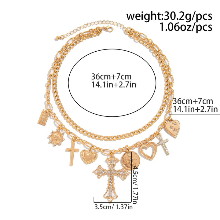Elevate your style with this elegant Chic Layered Necklace. Made with high-quality alloy metal and sparkling rhinestones, this necklace features a delicate cross, heart and round disk pendant that adds a touch of sophistication to any outfit. Be the envy of everyone with this stunning accessory.