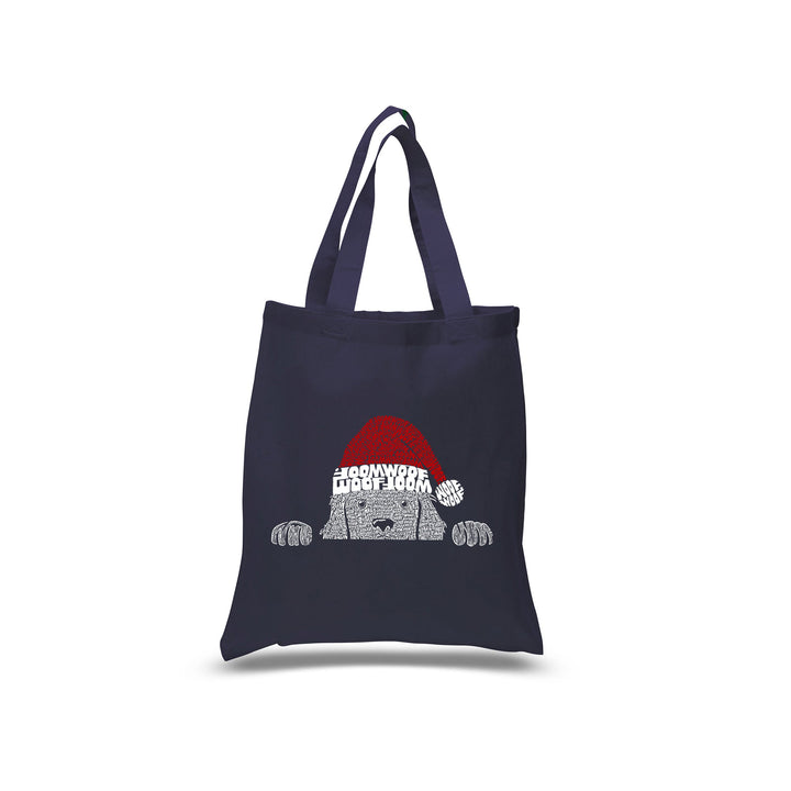 Christmas Peeking Dog - Small Word Art Tote Bag