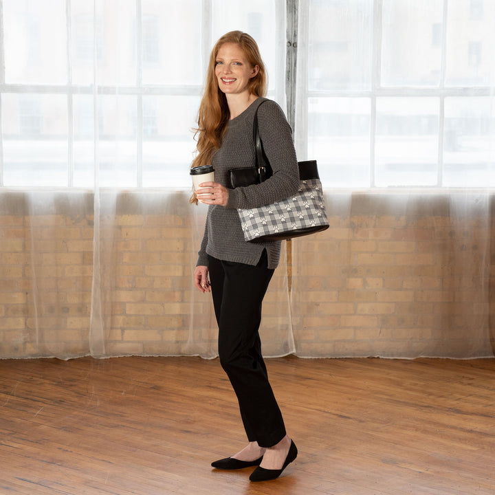 A classic plaid design gets an animal-friendly detail with small paw prints throughout in this versatile faux leather and canvas tote. Topped with gold-tone accents, this bag is the perfect carry-all for staying organized, prepared, and sending a message of your devotion to animal rescue causes!