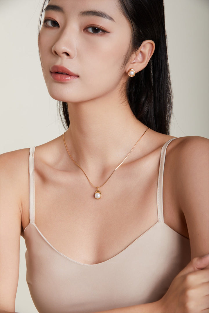 One highlight is its sleek design. With rounded pearls, a gracefully curved base, and a delicate solid chain, it strikes a perfect balance between trendy charm and timeless elegance.
