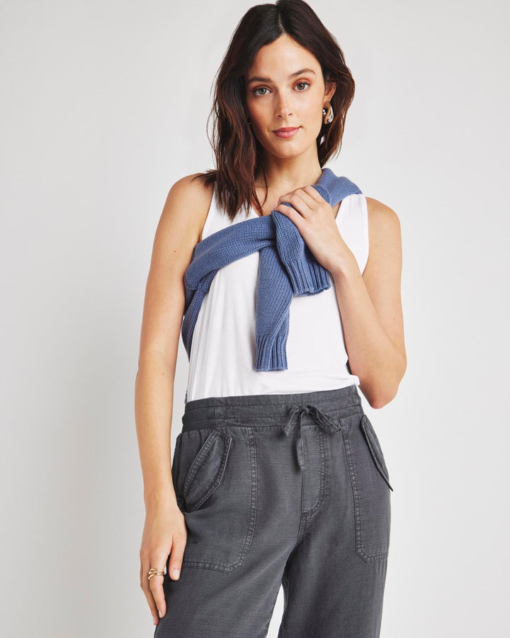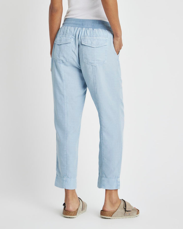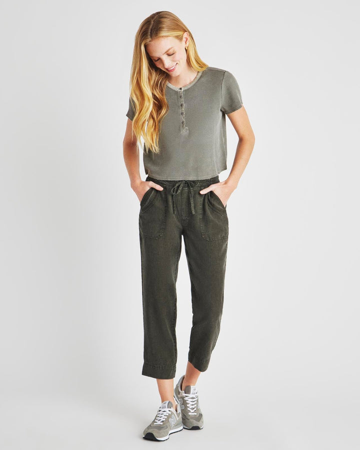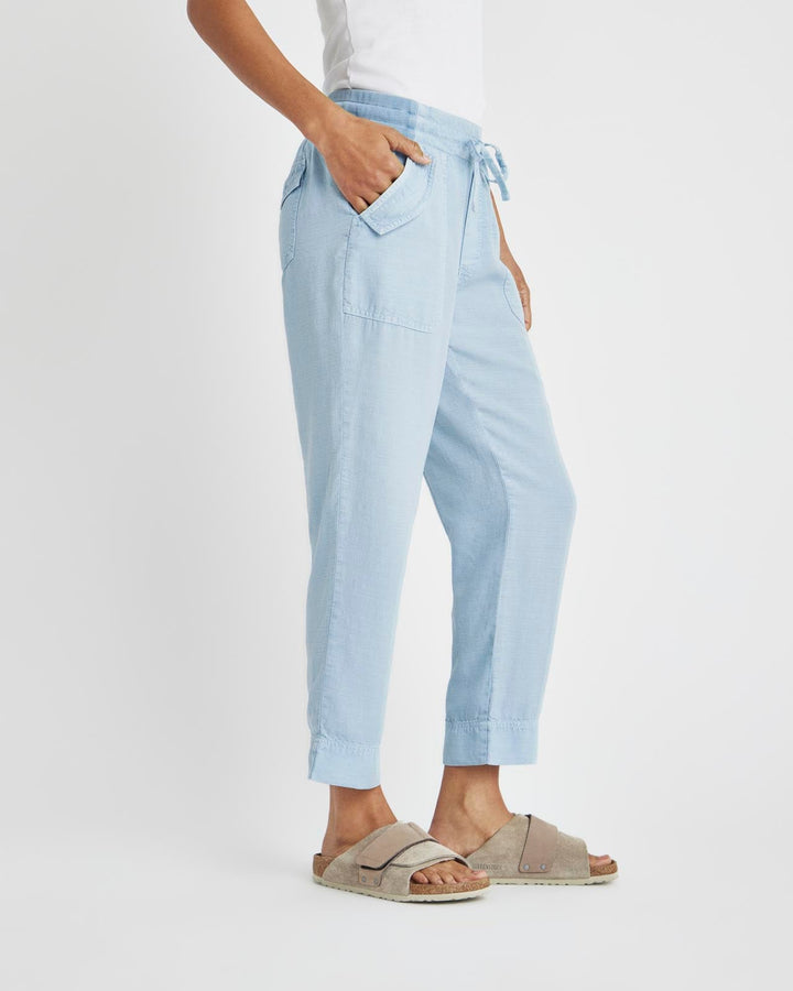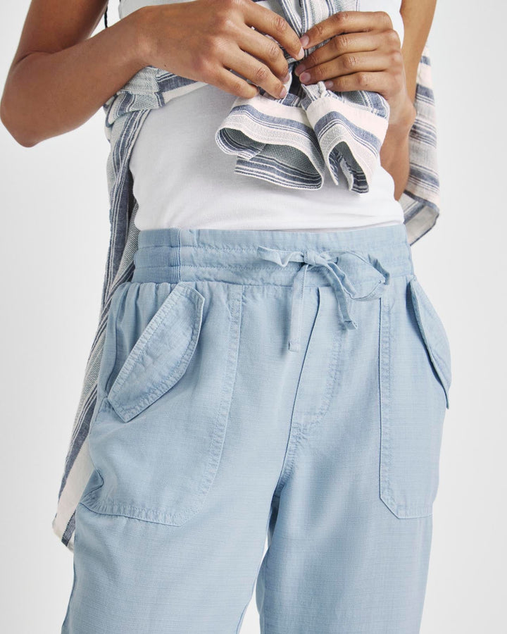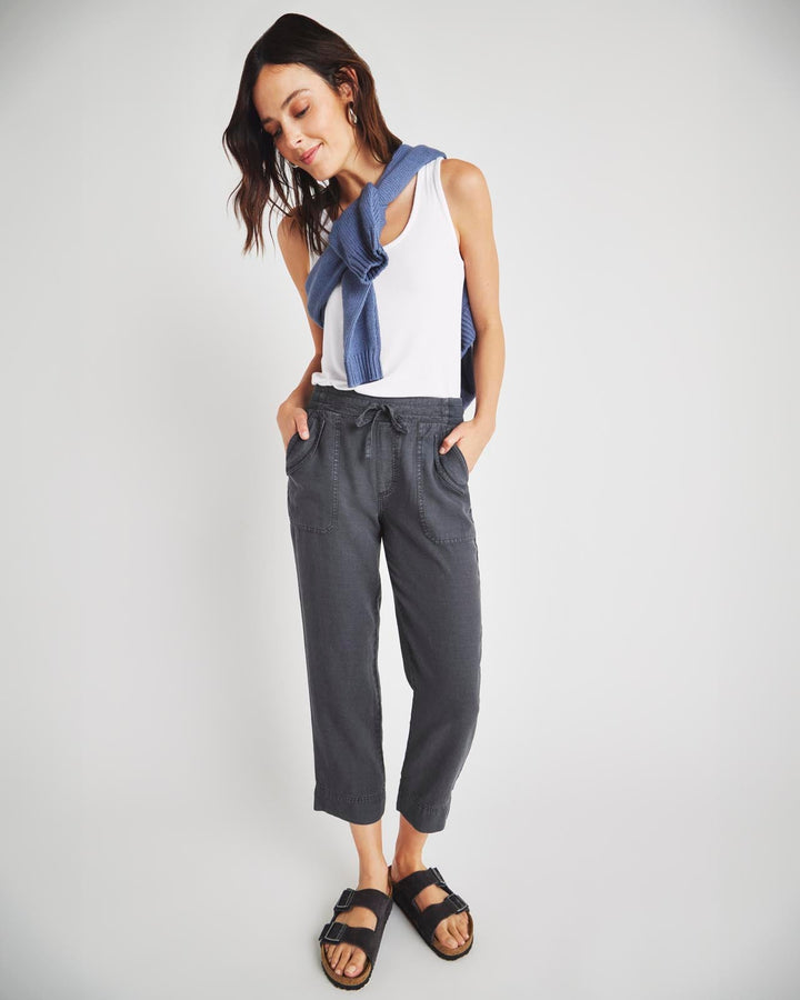 A lightweight pant for everyday wear-- from weekdays to weekends. The Collins Pant is crafted from a breezy linen blend and topped with a stretchy drawstring waist, flap pockets and a slightly tapered leg that hits just above the ankle. Tuck in a tee or tank and you're good to go.