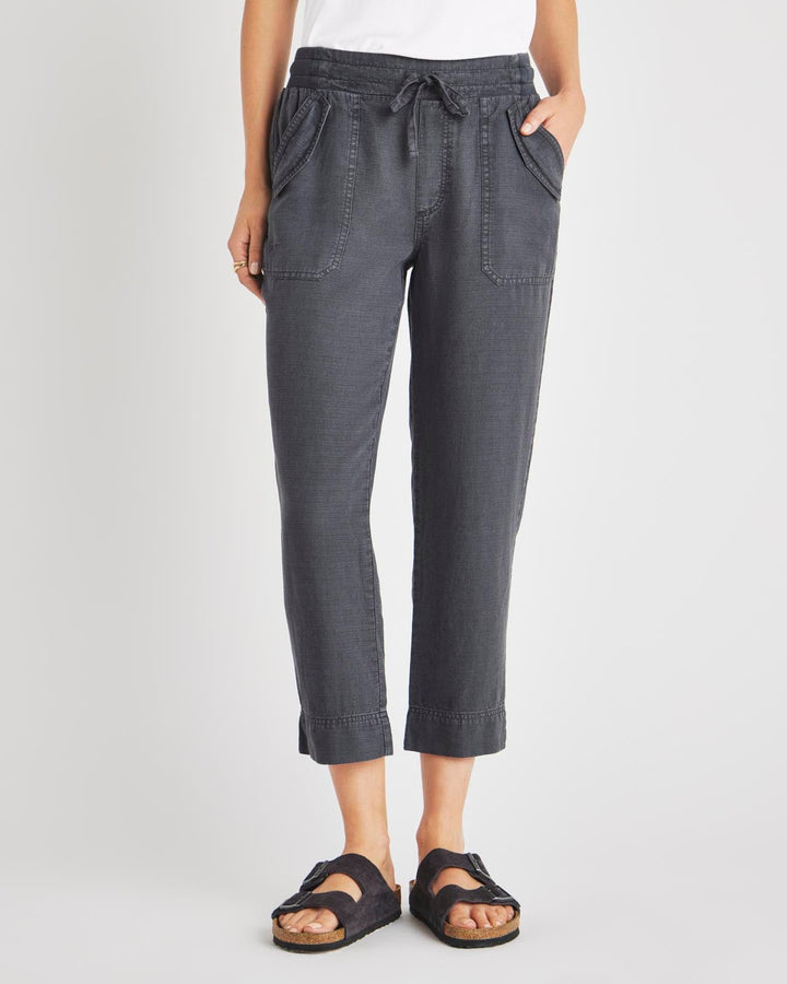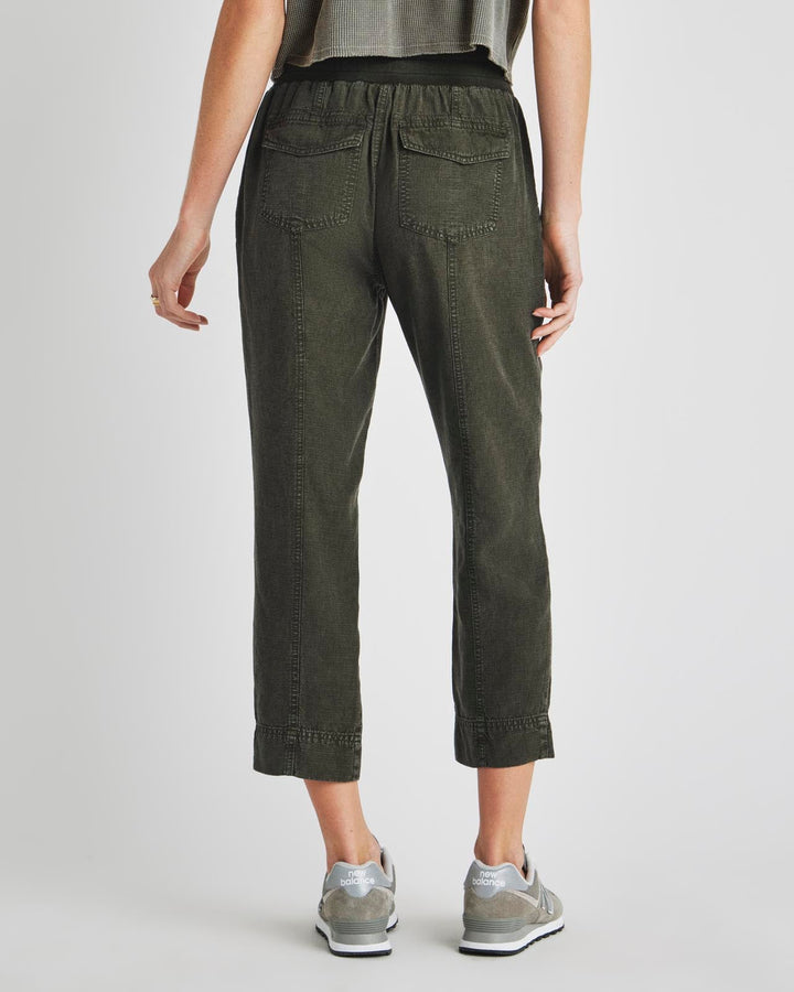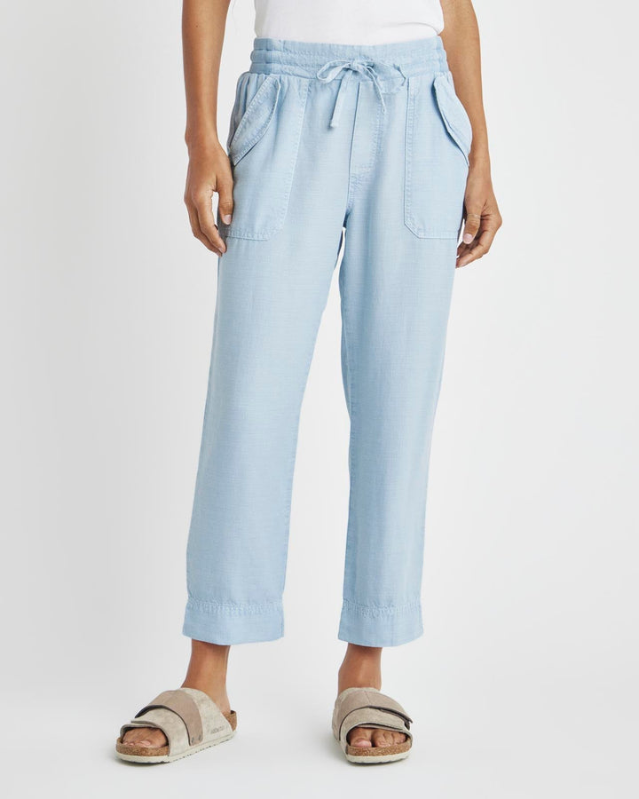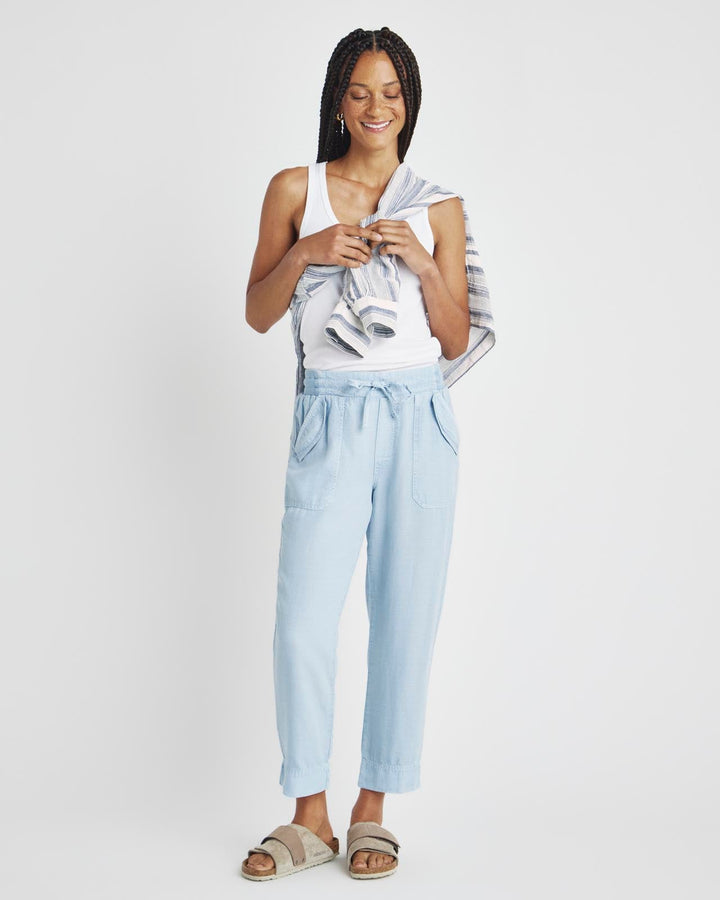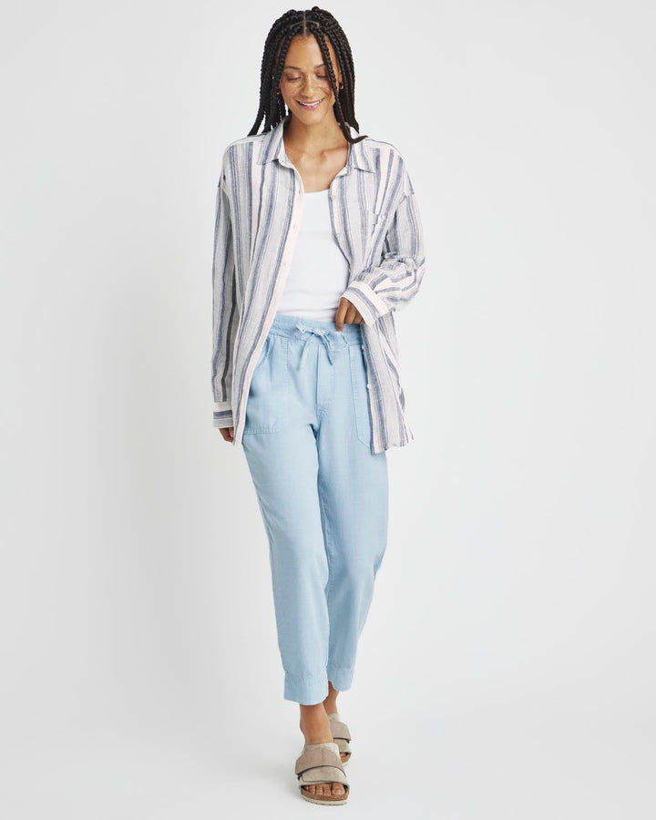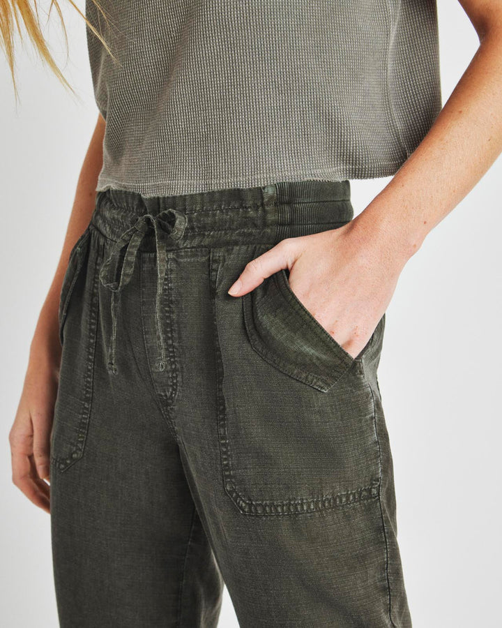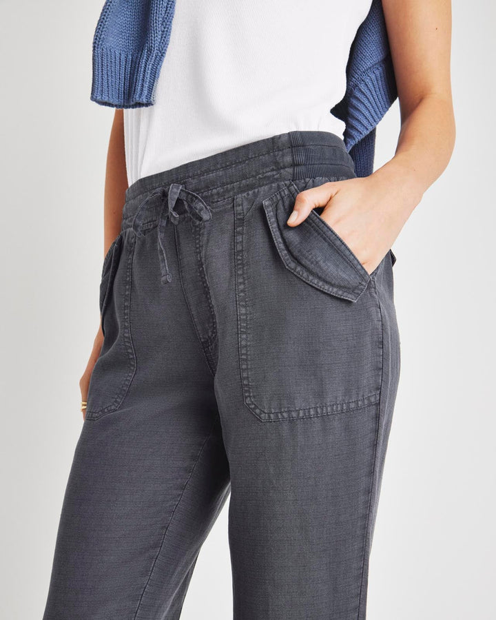 A lightweight pant for everyday wear-- from weekdays to weekends. The Collins Pant is crafted from a breezy linen blend and topped with a stretchy drawstring waist, flap pockets and a slightly tapered leg that hits just above the ankle. Tuck in a tee or tank and you're good to go.