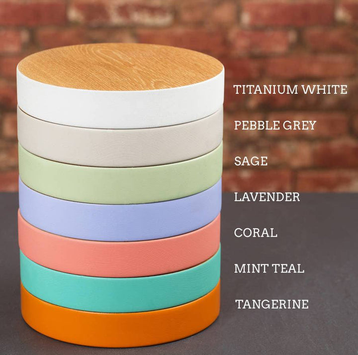 从钛白色、卵石灰色、鼠尾草色、淡紫色、珊瑚色、薄荷绿、钴蓝色或深红色中选择合适的边缘颜色。