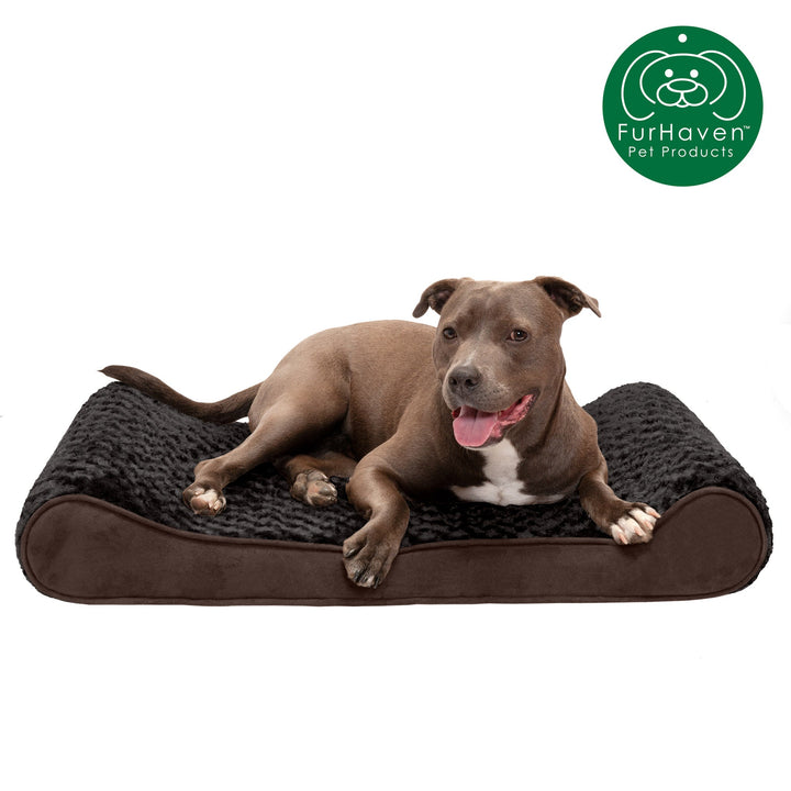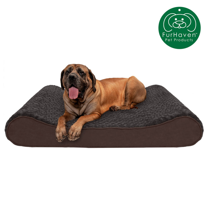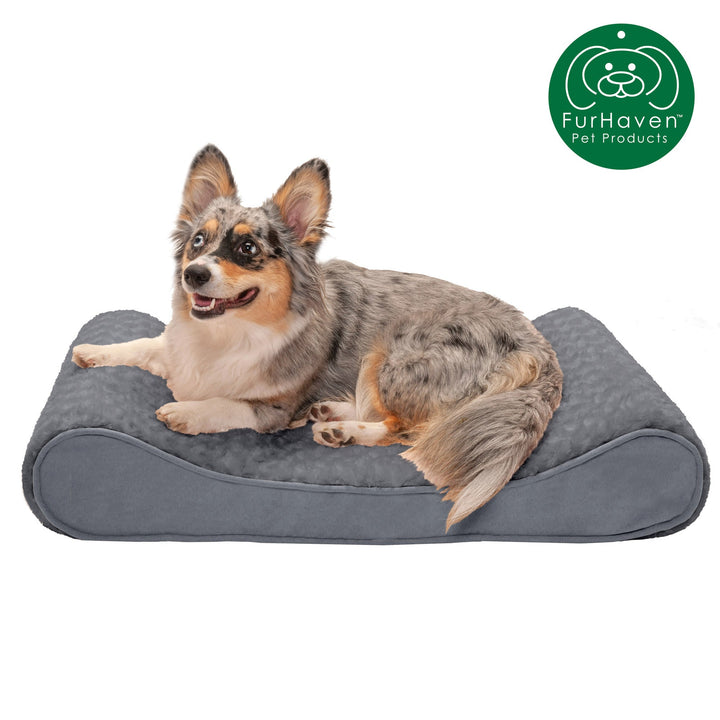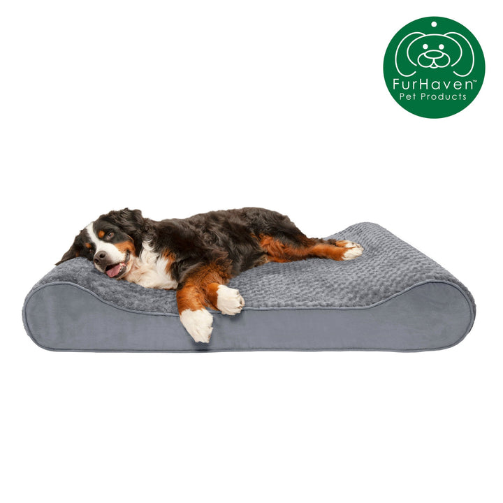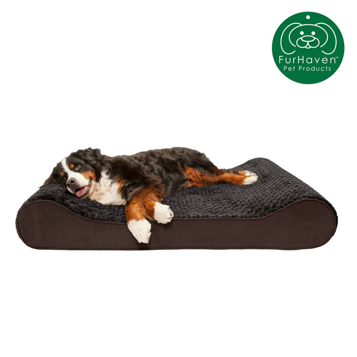 Give your best friend the comfort and support they need with a FurHaven Ultra Plush Luxe Lounger Pet Bed. This ergonomically-designed pet bed is contoured to cradle your pet's body and provide therapeutic back and neck support. Luxe Lounger pet beds features a medical-grade orthopedic foam core topped with gel-infused memory foam. Micro gel beads help keep the bed cooler while memory foam conforms to your pet's shape providing superior support of joints and pressure points. Gel foam has cooling properties reducing the sleeping surface by 1 or 2 degrees, wicking heat away from your pet. The superior support provided by both foam cores will help your pet reach a deeper, more restorative rest for your pet's health. These are the perfect dog beds for hot summer days. Ultra Plush sleep surface is super soft for the ultimate "cozy" experience.