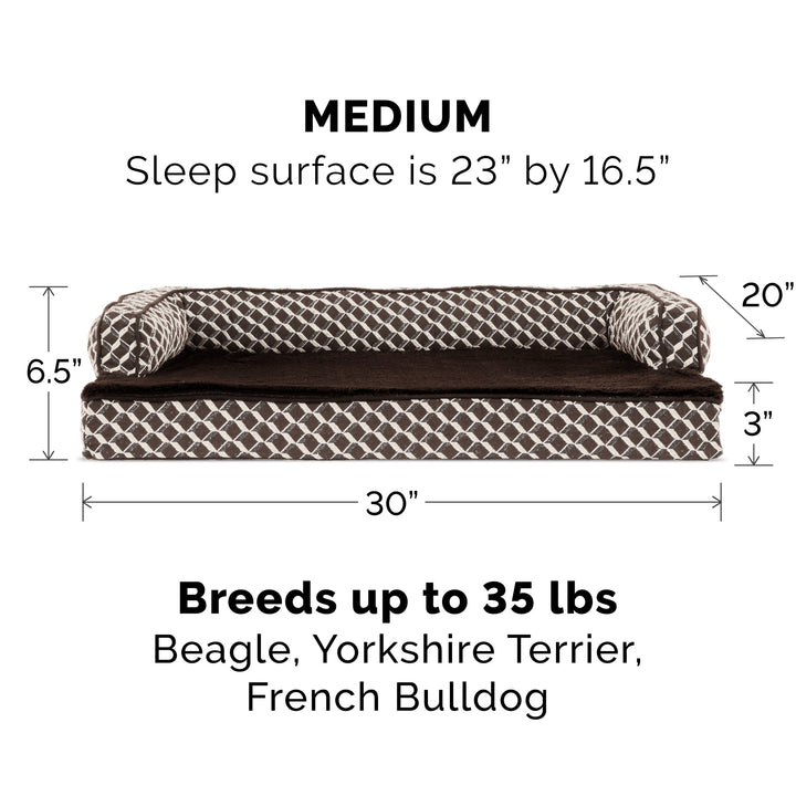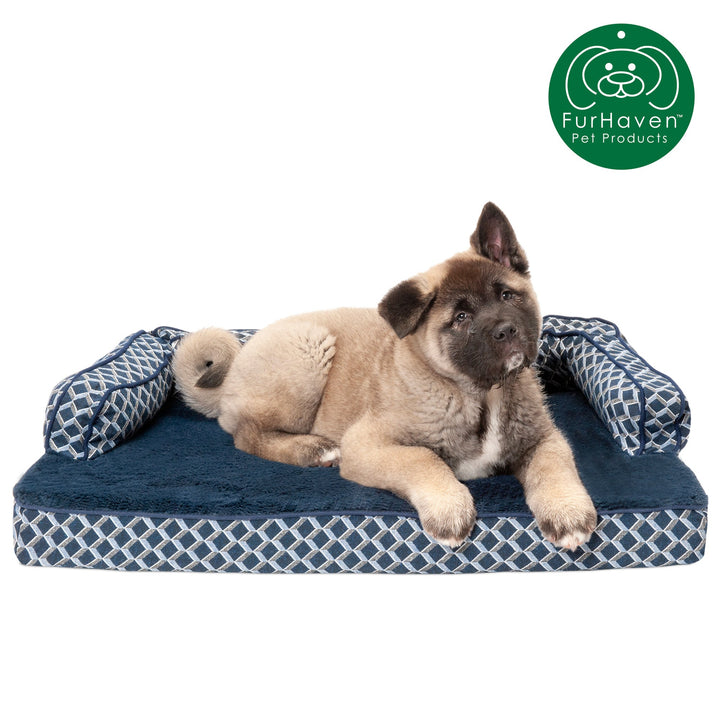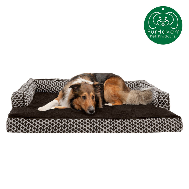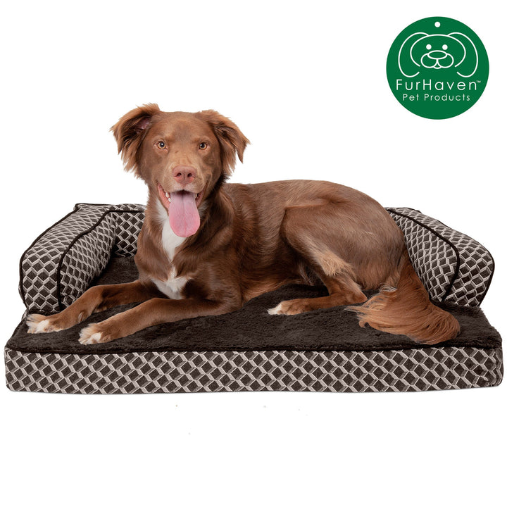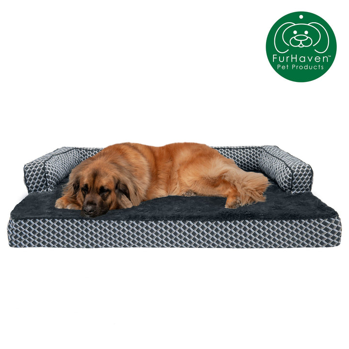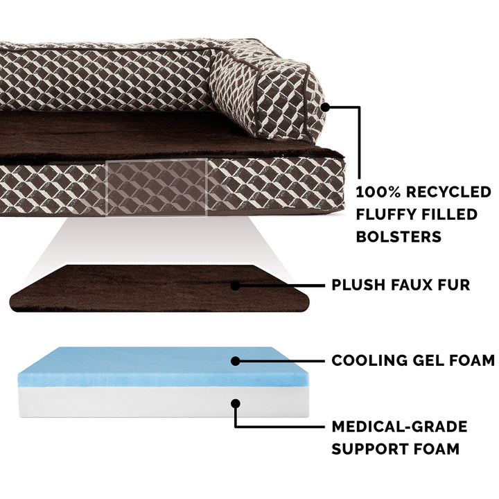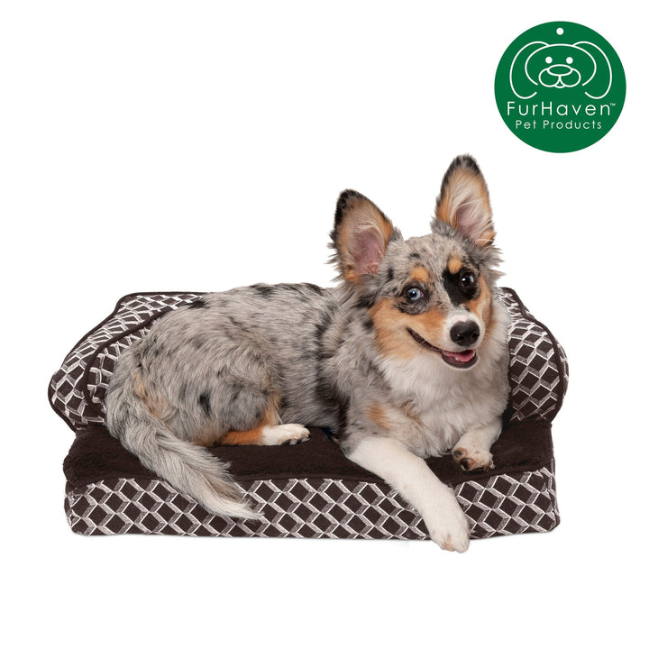 Perfect for cats and dogs of all ages, the FurHaven Comfy Couch pet bed is a short-sided pet sofa that is sure to be your pet's favorite new snuggle spot. The medical-grade foam core includes a layered orthopedic foam core topped with gel-infused memory foam. Micro gel beads help keep the bed cooler while memory foam conforms to your pet's shape providing superior support of joints and pressure points. Gel foam has cooling properties reducing the sleeping surface by 1 or 2 degrees, wicking heat away from your pet. The superior support provided by both foam cores will help your pet reach a deeper, more restorative rest for your pet's health.