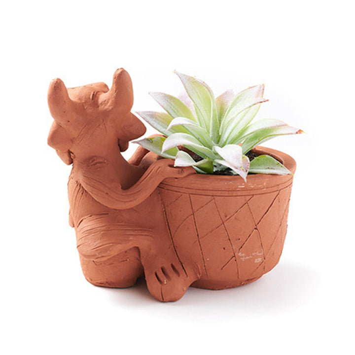Our Rakshana Plant Pals showcase the master craftsmanship of Blue Pottery of Jaipur artisan's in playful planter designs with natural terracotta finish.