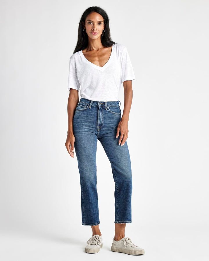Our Cropped Stovepipe Jean feels like true-blue denim. This high waisted style features an easy fit and cropped hem, which makes them perfect for wearing with boots and loafers alike. Tuck in a tee or style with a sweater--these jeans go with everything.