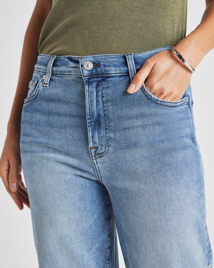 This effortless pair-- finished in clean white so it teams with all your favorite Splendid tops-- has a high rise waist with a slim fit through the hip and a cropped wide leg hem.