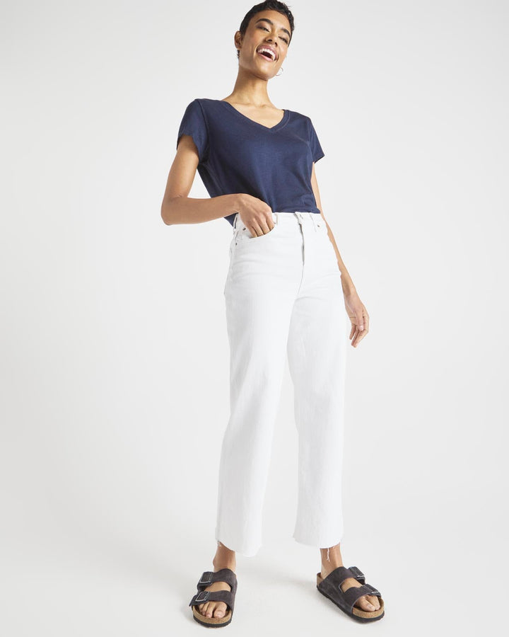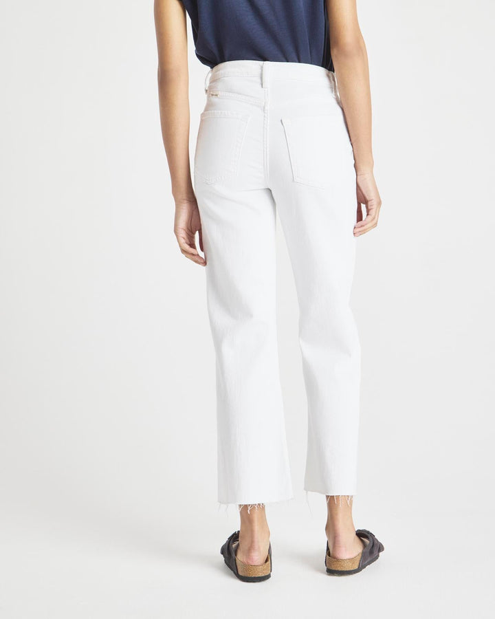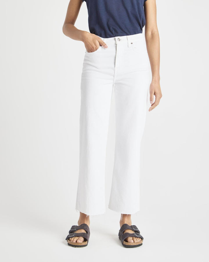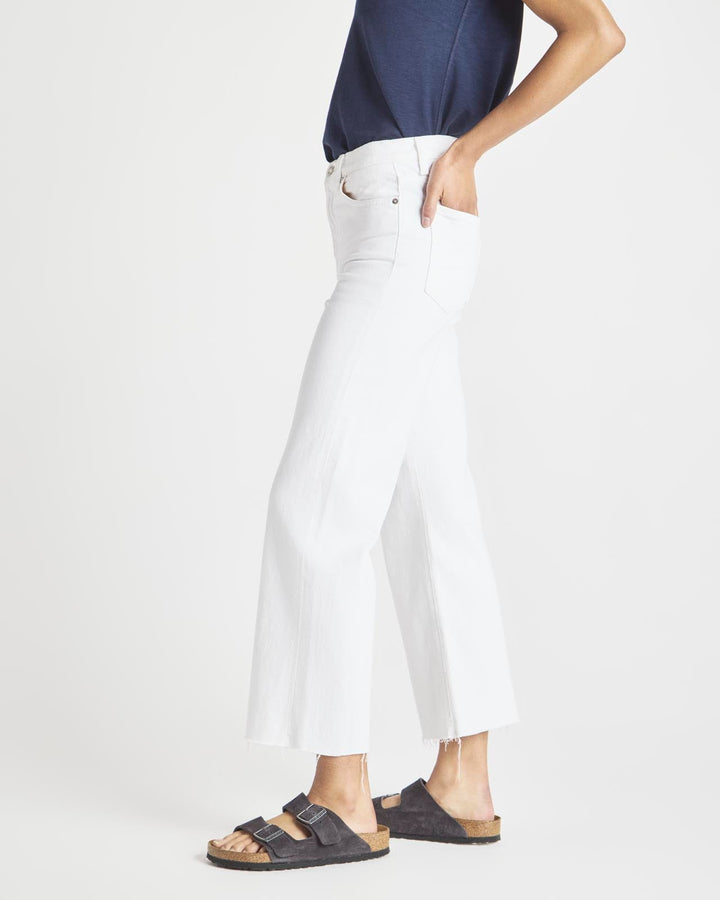 This effortless pair-- finished in clean white so it teams with all your favorite Splendid tops-- has a high rise waist with a slim fit through the hip and a cropped wide leg hem.