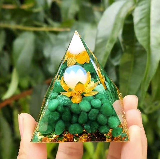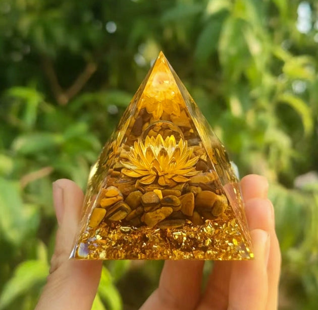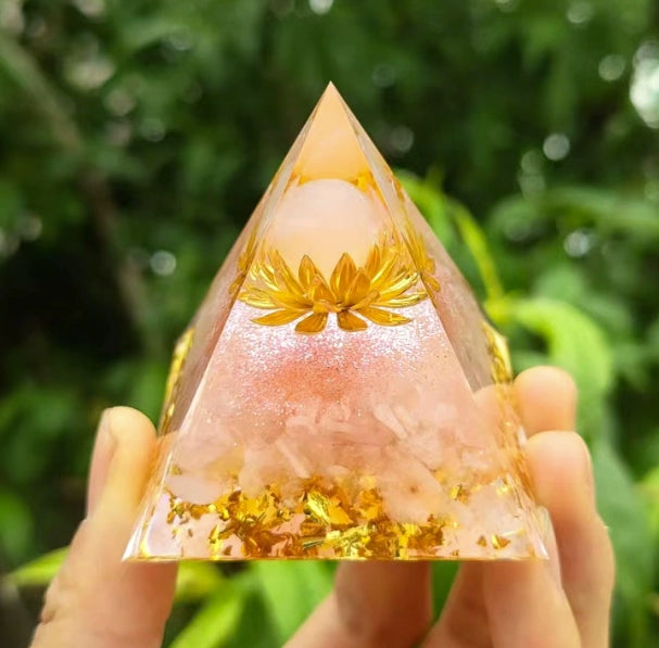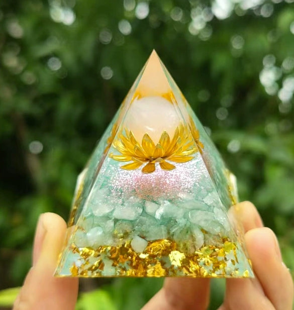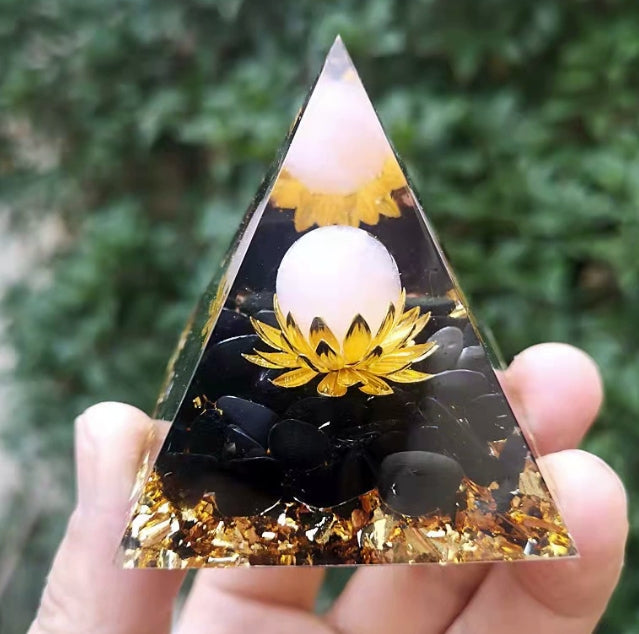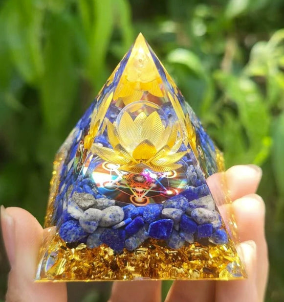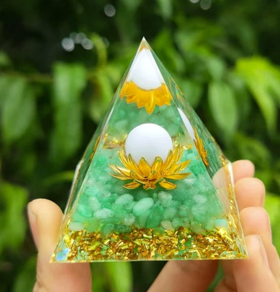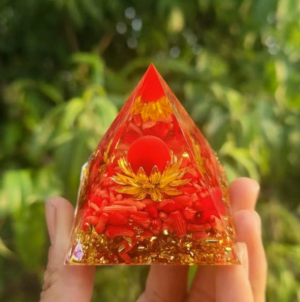 Crystal Pyramid Sphere with Crushed Gemstones – Handmade Epoxy Resin Art Elevate your spiritual space with this enchanting Crystal Pyramid Sphere, a mesmerizing fusion of ancient symbolism and modern craftsmanship. Each piece is meticulously hand-poured with clear epoxy resin, encapsulating shimmering crushed gemstones and healing quartz crystals that radiate natural energy and ethereal beauty. The pyramid shape, revered across cultures for its connection to balance and cosmic energy, serves as a powerful centerpiece for meditation, intention-setting, or simply adding a touch of mystical elegance to your desk, altar, or home décor.