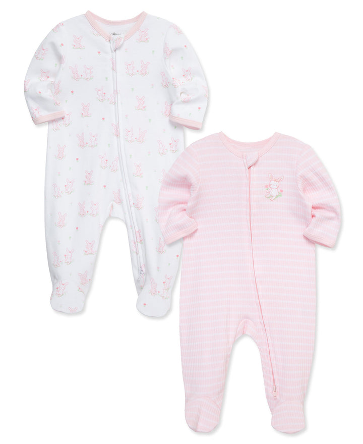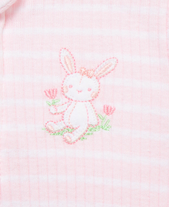 - Tulips and bunnies dance across a pair of these newborn baby girls' premium organic cotton footies!