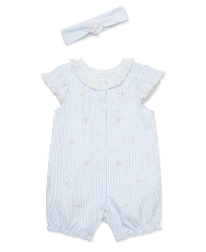 - She'll look dashing in daisies in this newborn baby girls' cotton knit romper and matching headband!