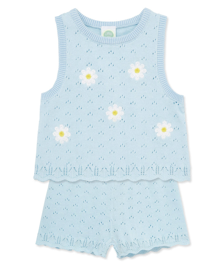 - Peace, love, and daisies! This newborn baby girls' cotton pointelle set features a daisy tunic and coordinating shorts.