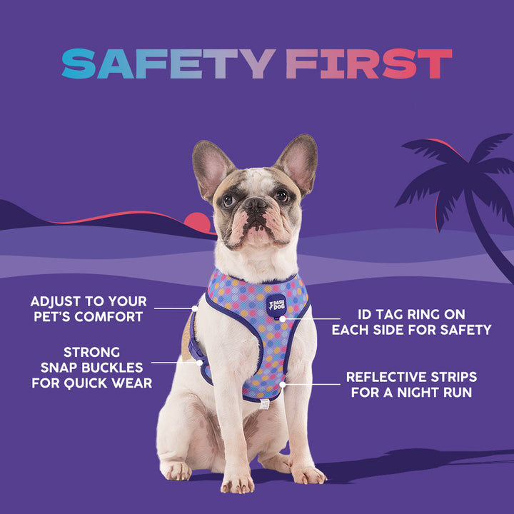 Why have fun once, when you can have it twice? Dash Dog Circle Double Harness is reversible and can be worn in two ways. The air mesh fabric makes it extremely lightweight. Just click the buckles close, attach your favourite DD leash to the harness and head out to chase the sun!