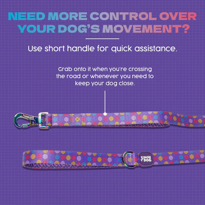 Itching to run on an unexplored trail? Vibrant, strong and durable, Dash Dog Circle printed leash is perfect for your adventurous dog.