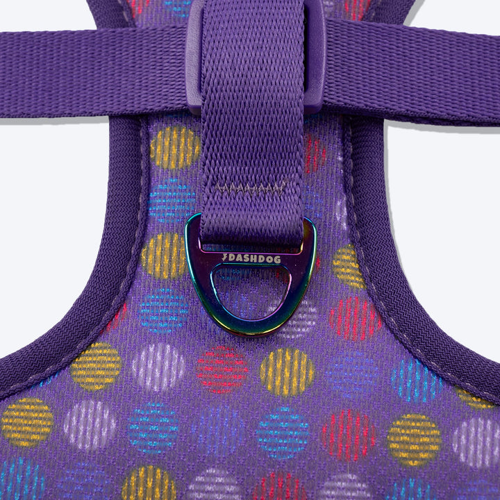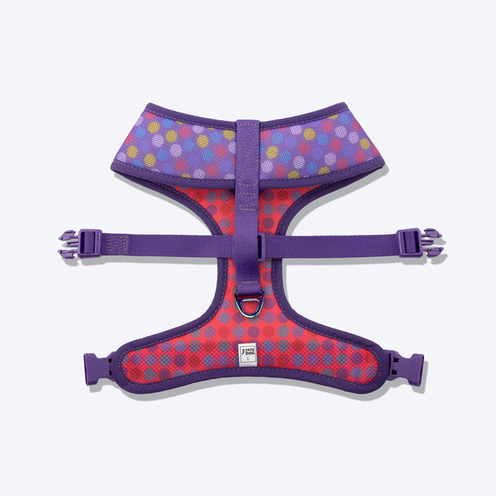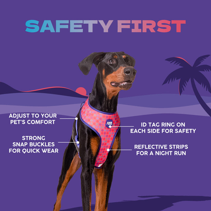 When it's Dash Dog, it is always double the fun. This harness is reversible and can be worn in two ways. The air mesh fabric makes it extremely lightweight. Just click the buckles close, attach your favourite DD leash to the harness and head out to chase the sun